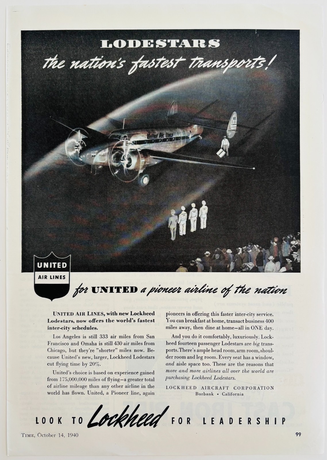 1940 Lockheed United Airlines Lodestars Advertisement Aviation Travel DWJ5B