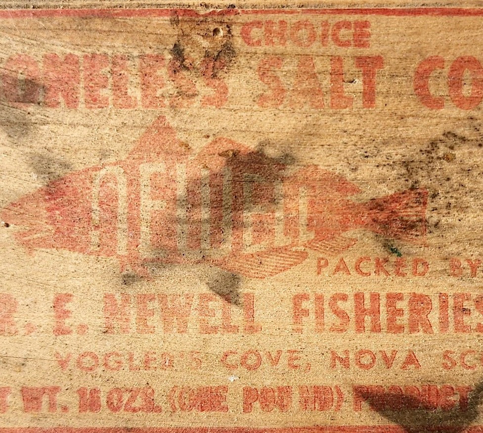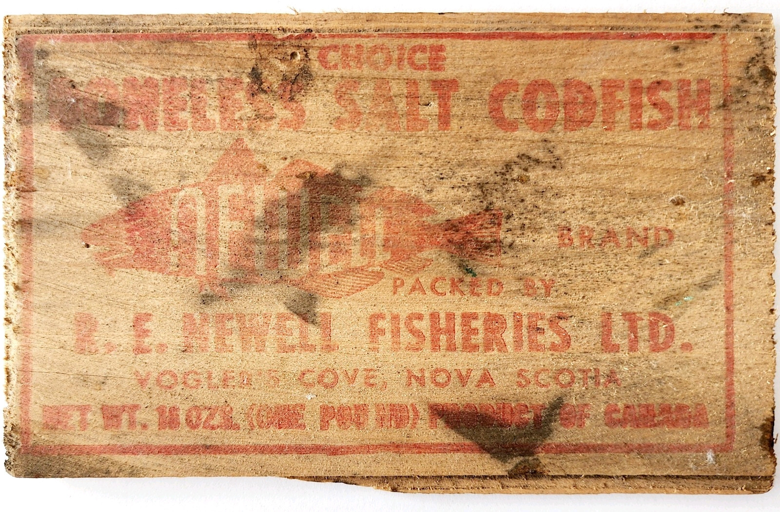 1950s Newell Fisheries Salt Cod Fish Wood Box Lid Nova Scotia Canada E99