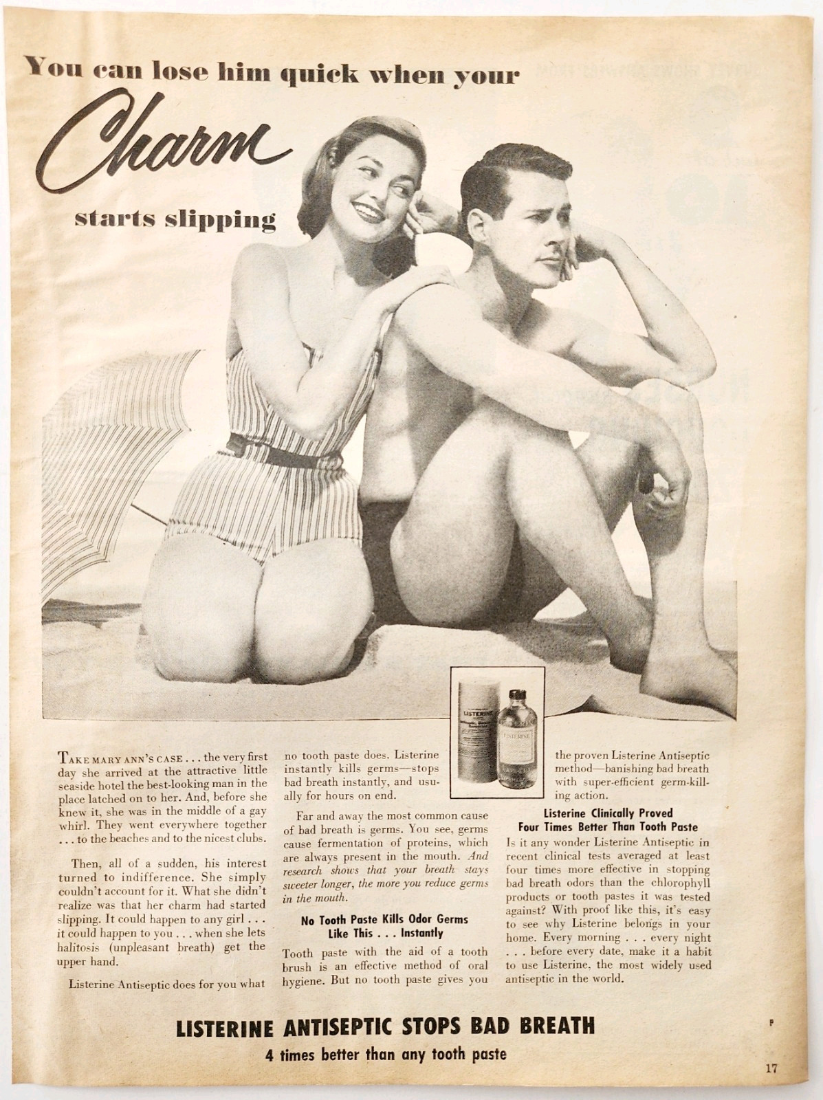 1955 Listerine Antiseptic Mouthwash Advertisement Dental Oral Hygiene DWQQ8