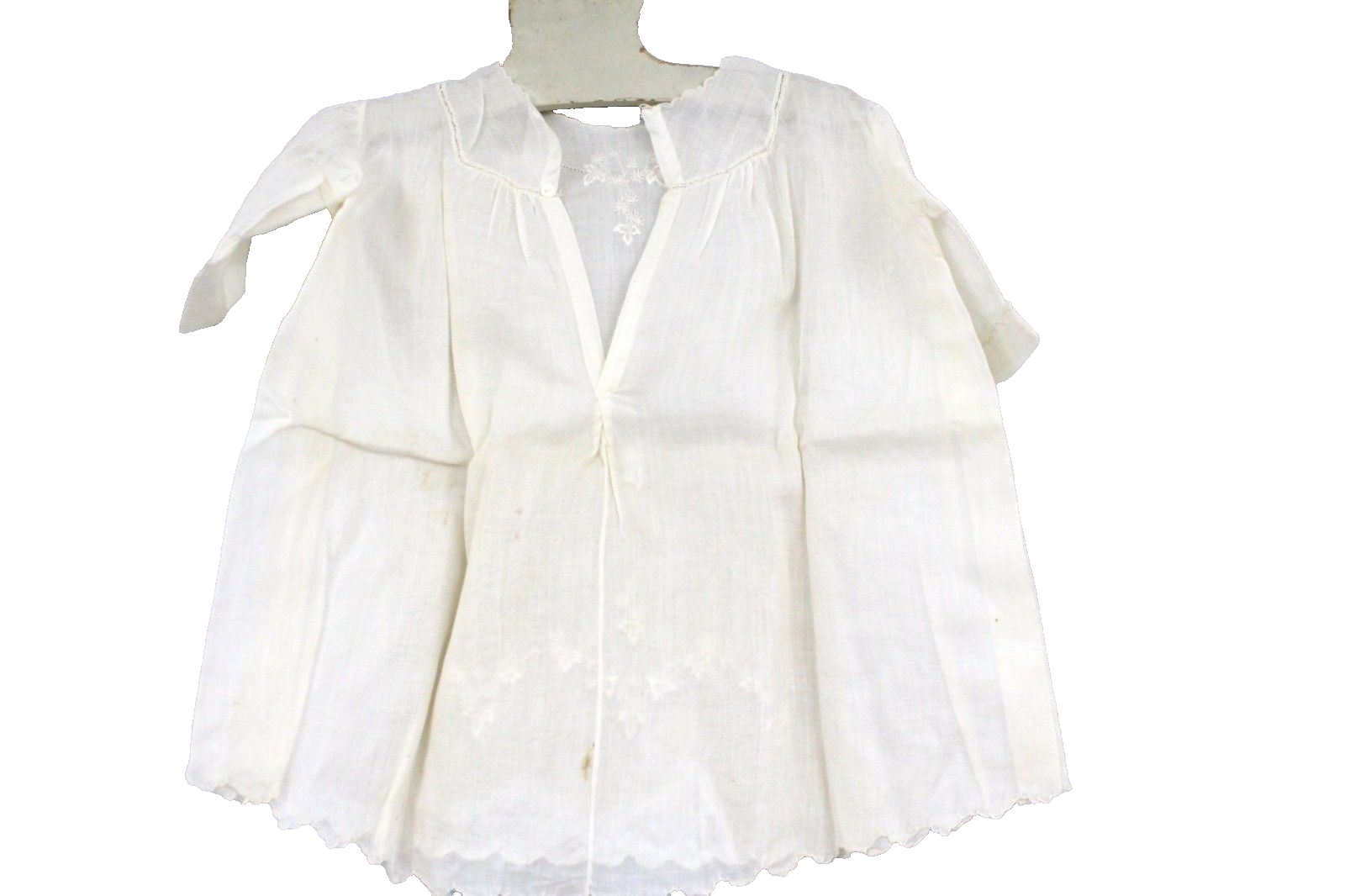 VTG 50s Baby Dress Ivory Cotton Lawn Embroidered Infant Doll Sz 12mo 26 Chest