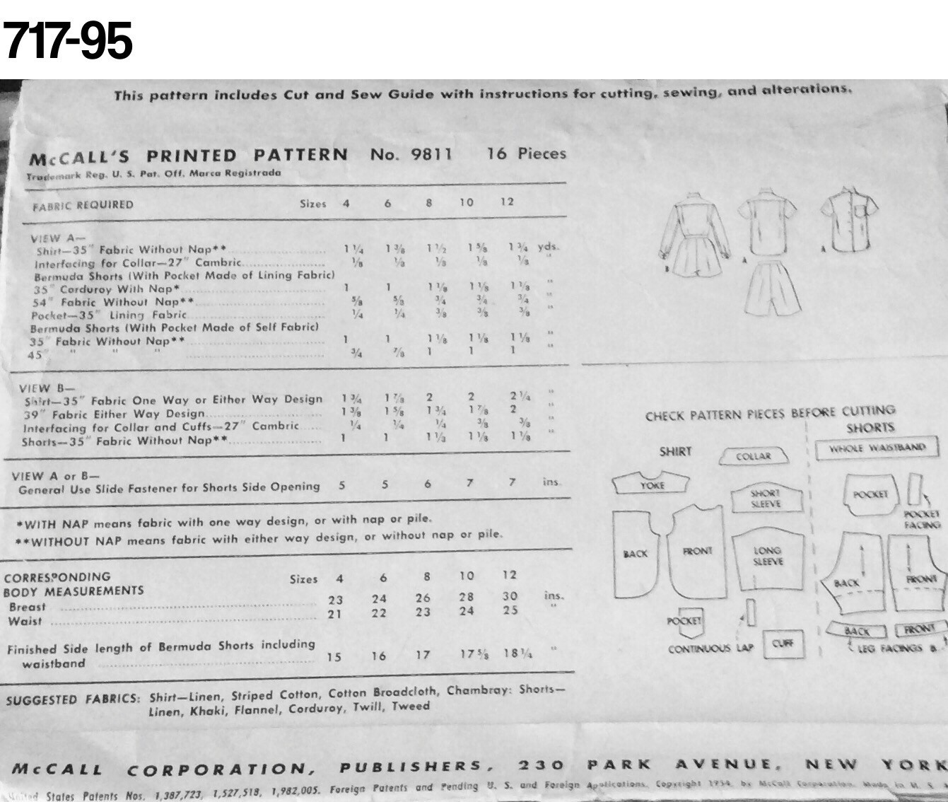 Vtg RETRO Sewing Pattern McCall's #9811 Size 10 Girls' Shirt and Shorts 1954