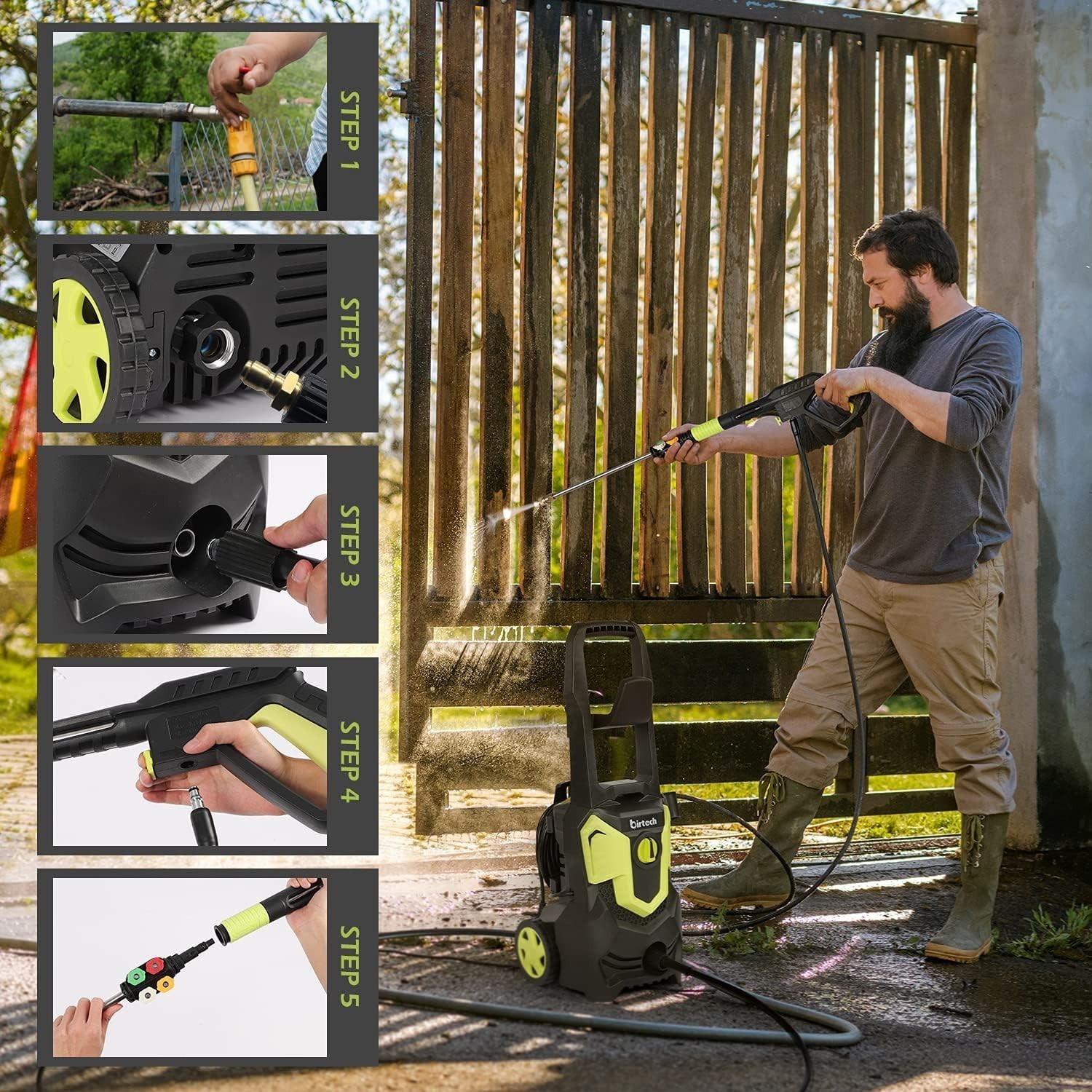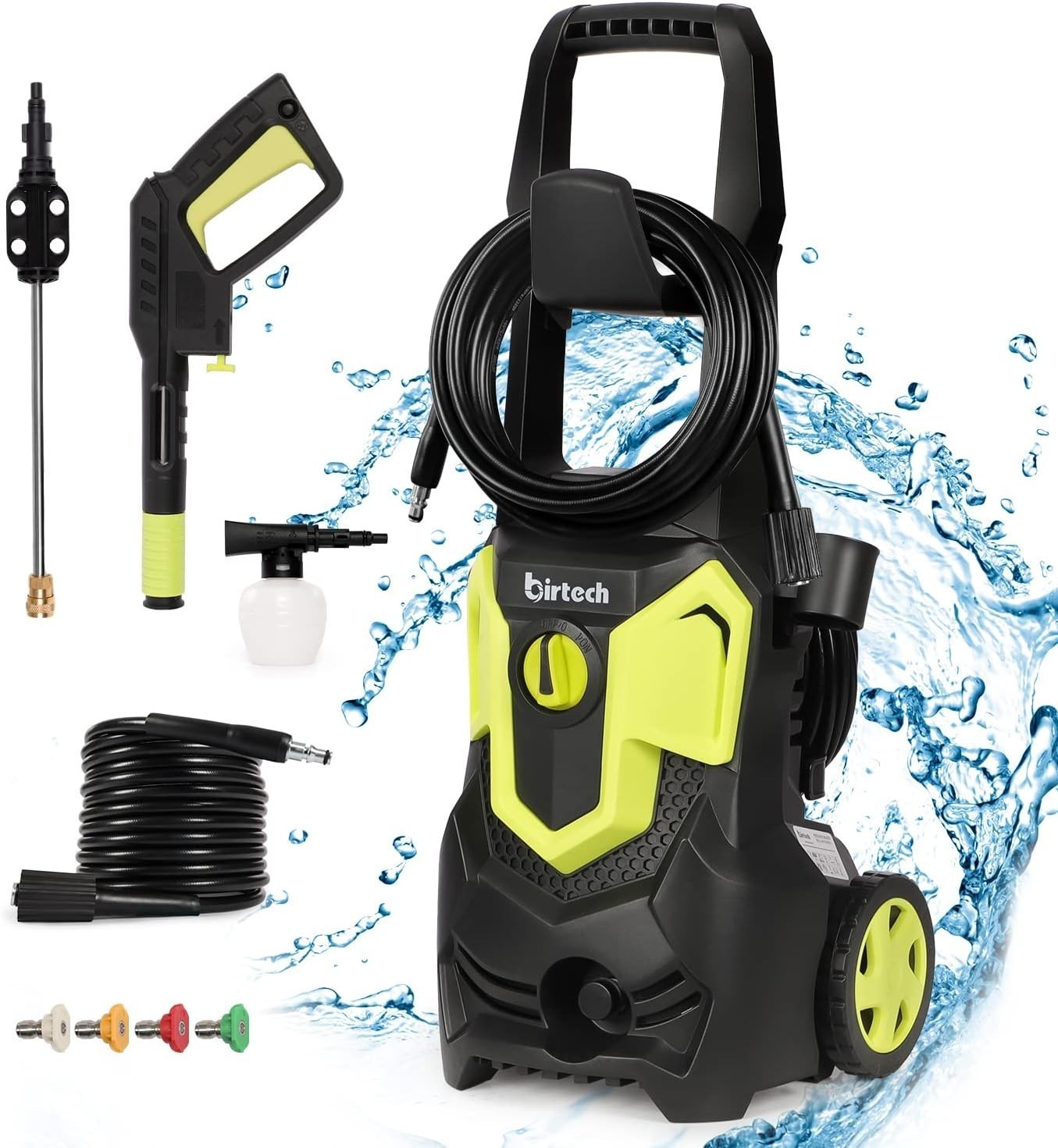 Birtech Electric Pressure Washer, Power Washer Car Wash Machine 3000 PSI, 1.8GPM High Pressure Washers 1650W with 4 Adjustable Spray Nozzle Foam Cannon for for Driveways/Patios/Vehicles/Deck/Fence
