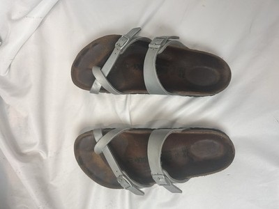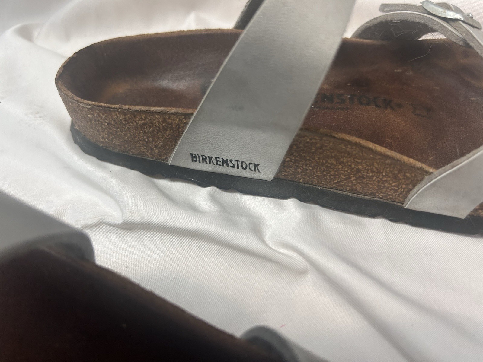 Birkenstock Mayari Sandals Women’s Size 39 8.5 Metallic Silver Leather Cork