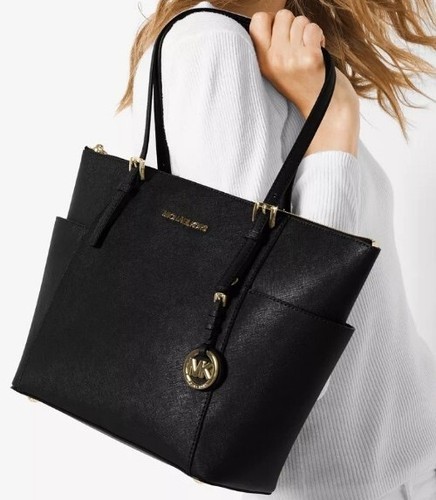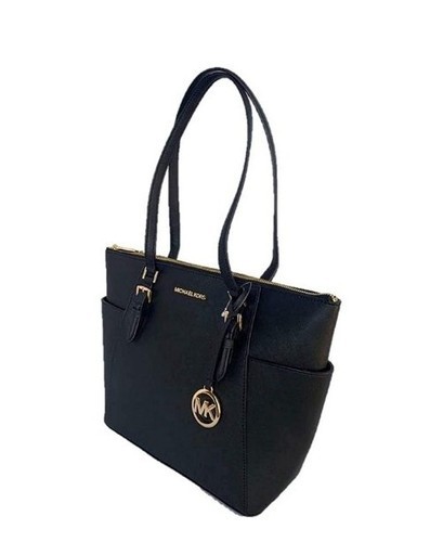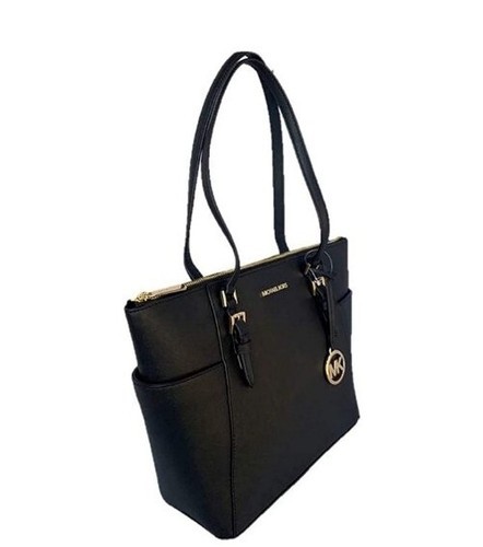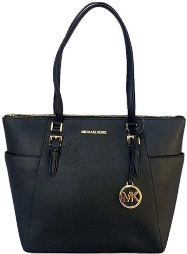 MICHAEL KORS Charlotte Handbag/Purse Shoulder Bag Tote ~ Black ~ Top Zip ~ Logo