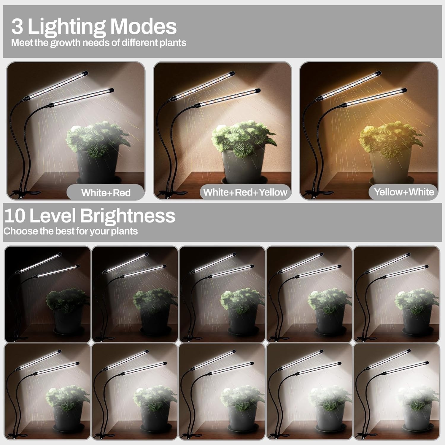 This 2 Head Grow Light is intuitive and easy to use. Simply connect the adapter to the device and the plug to a nearby power source. The tube is more flexible and convenient. Adjust the product to optimal distance and lighting direction or as needed.