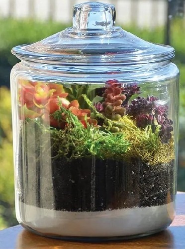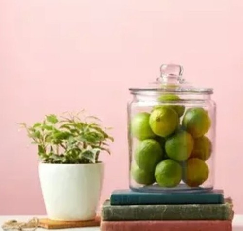 Jar measures approximately 6.5" tall without lid (approximately 8" tall to top of knob/handle)