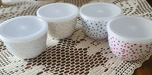 Includes Four (4) prep bowls Four (4) coordinating ~ plastic ~ snap on lids