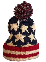 Parquet American Flag Knit Pom Beanie Ski Hat with Stars