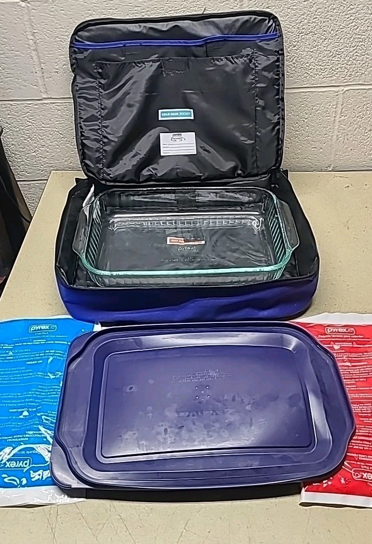 Pyrex Portables 3 Qt 13x9 Casserole Bake Dish Carrier Set w/ Lid & Hot Pack 233S