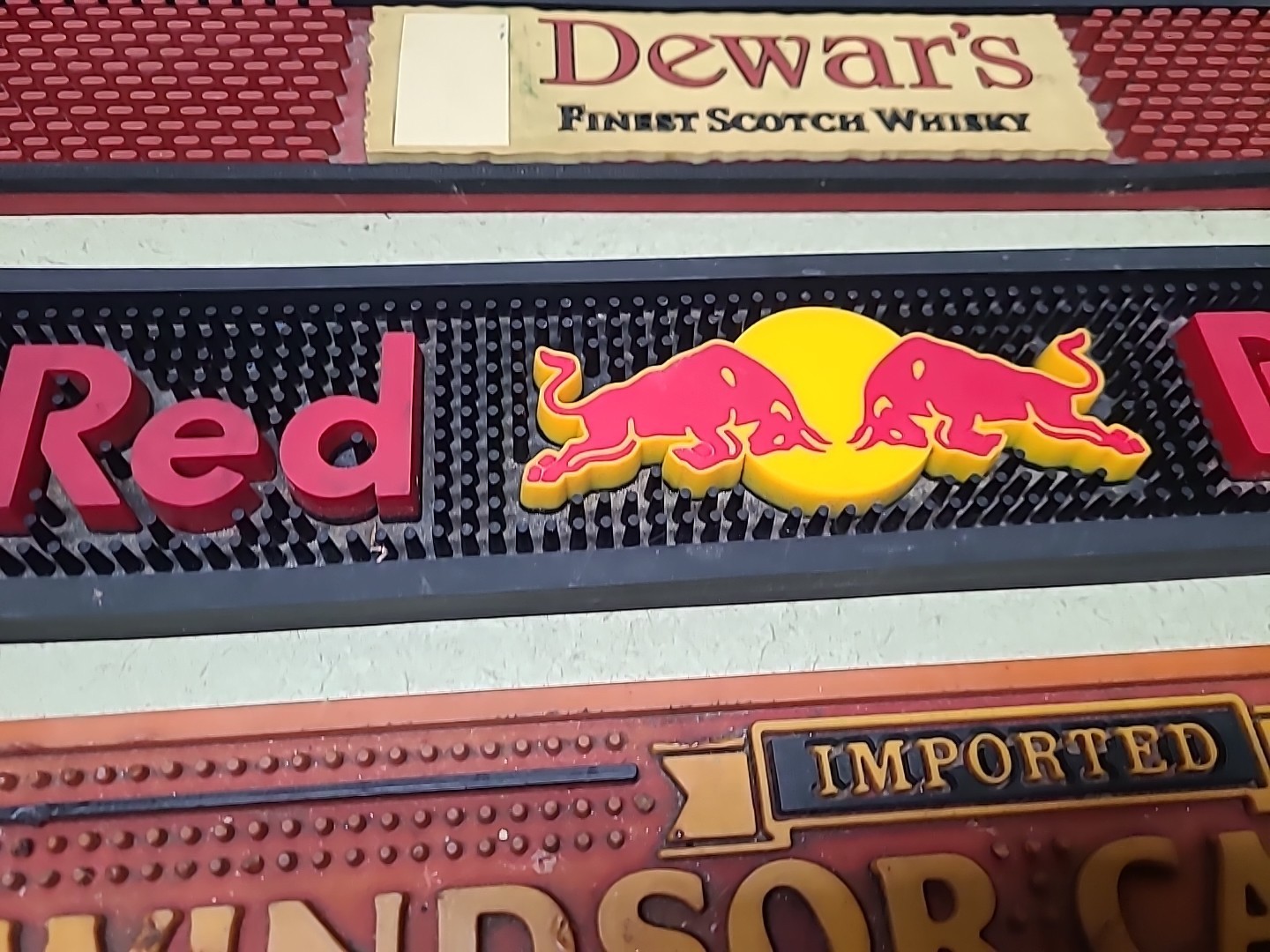 Lot of 3 Rubber Bar Spill/Drip Mats Red Bull, Dewar's, Windsor Canadian Whiskey