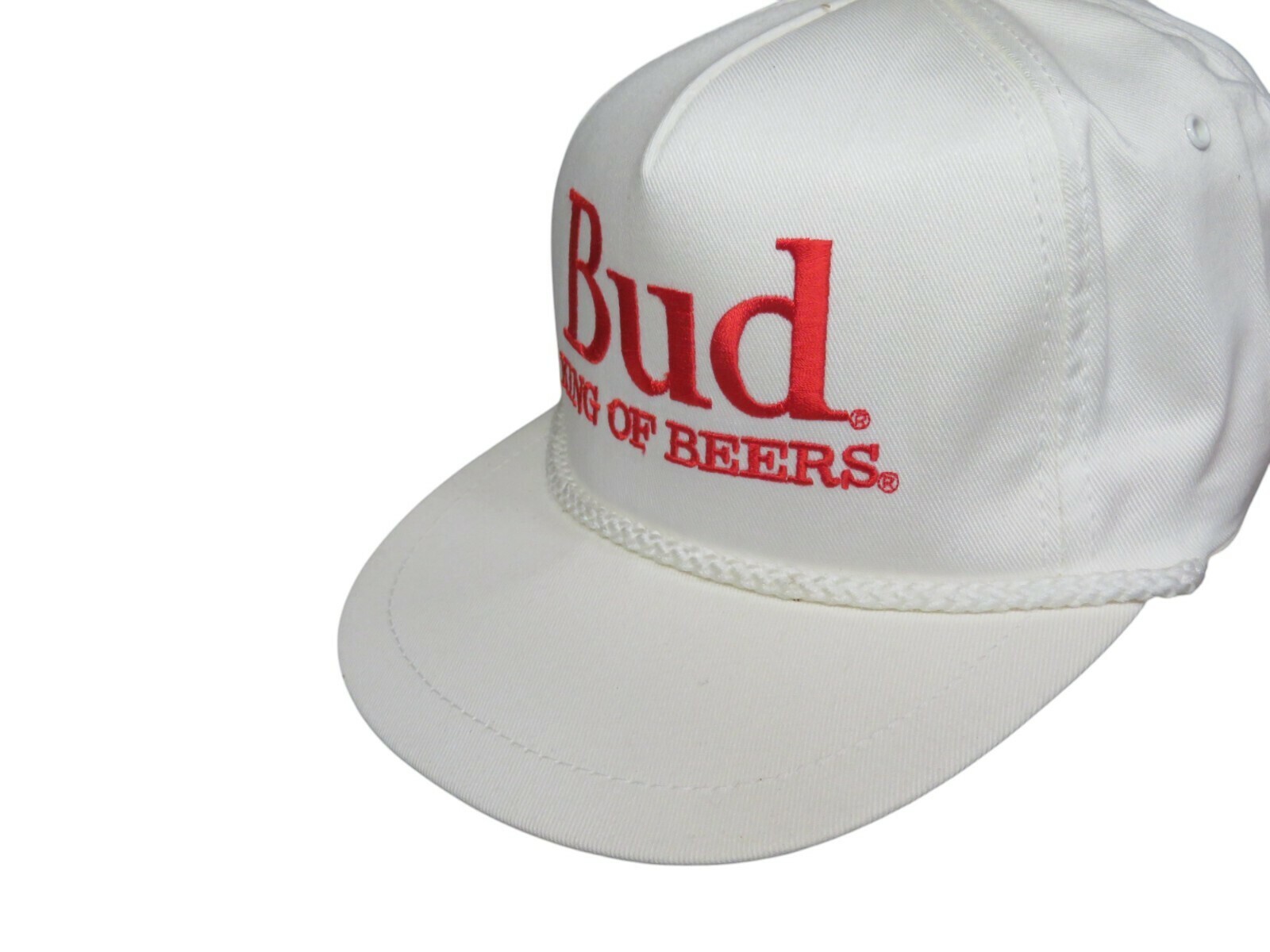 Bud King Of Beers Trucker Snapback White Hat Vintage Budweiser Cap Roped NOS