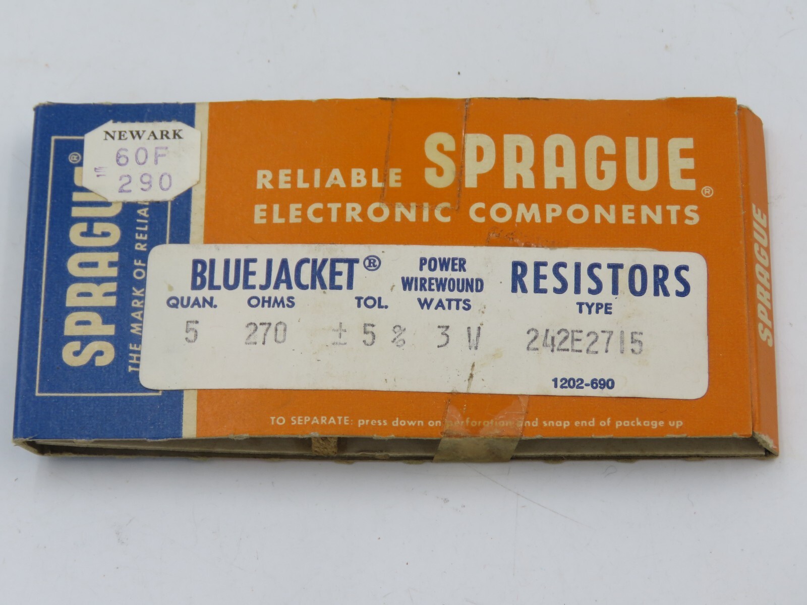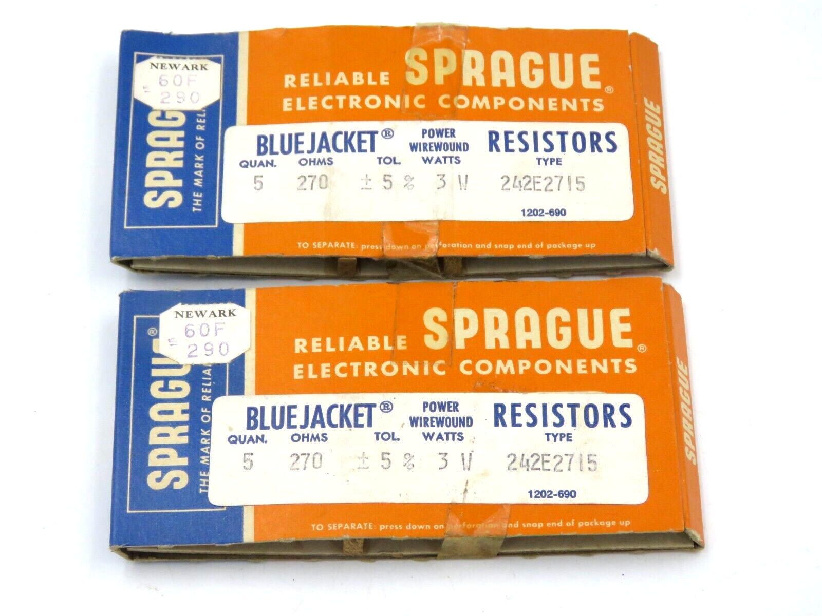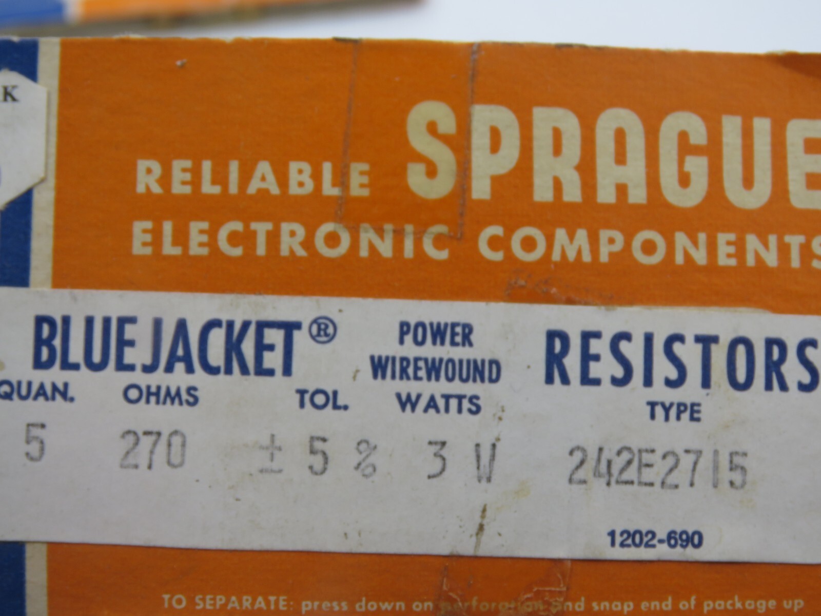 10 NOS NIB Vintage Sprague 270 ohm 3 watt 3W Bluejacket Resistors 5%