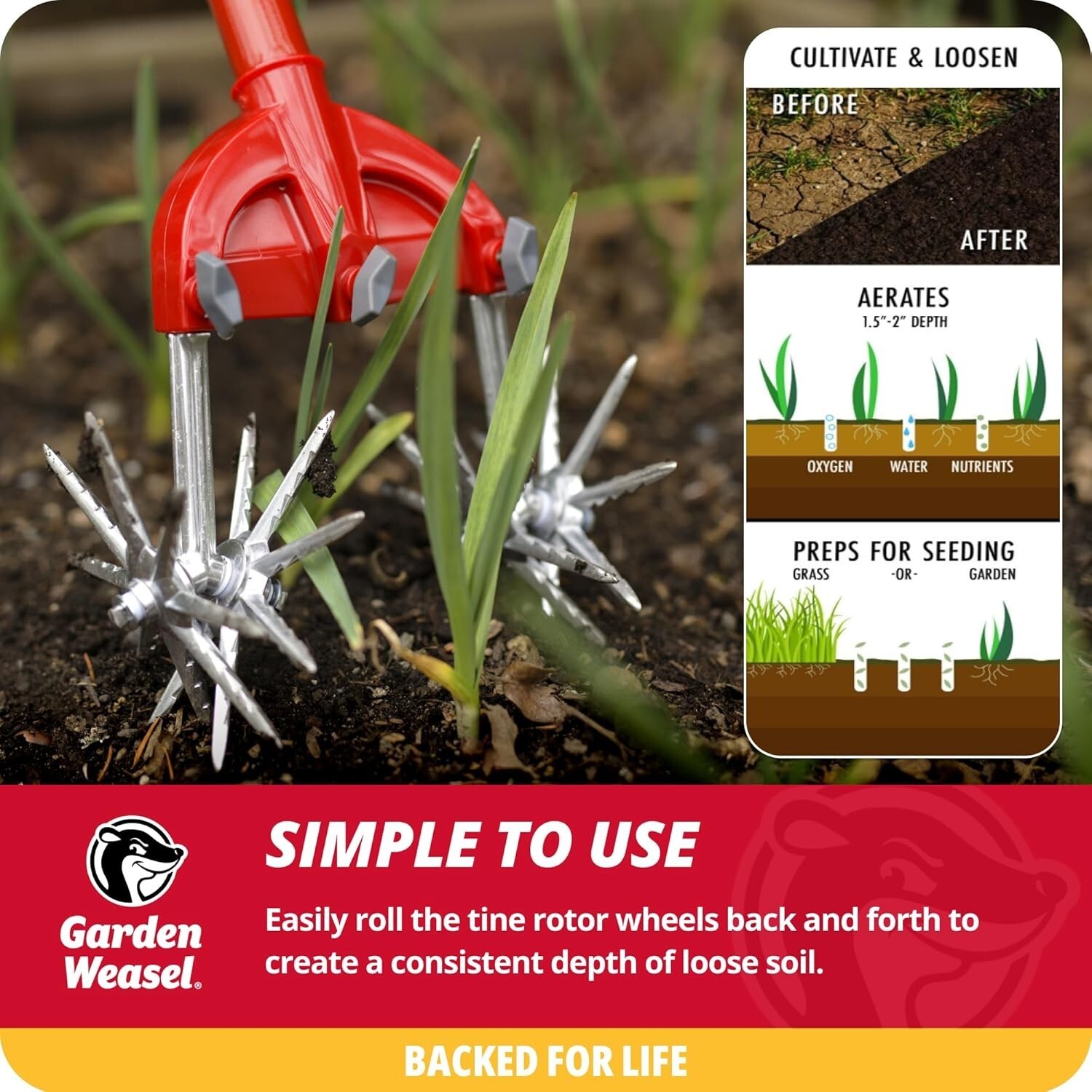 The Garden Weasel 90206 Rotary Hand Cultivator offers a combination of durability, comfort, and versatility that will make gardening tasks quicker and easier. Whether you?re tackling weeds, loosening soil, or aerating the ground, this tool is up to the challenge, making it a must-have for any gardener.