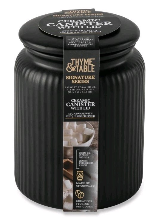 Thyme & Table ~ 27.6 Ounce Ribbed Glass Jar ~ Canister w/Lid ~ 4.4 in x 5.9 Tall