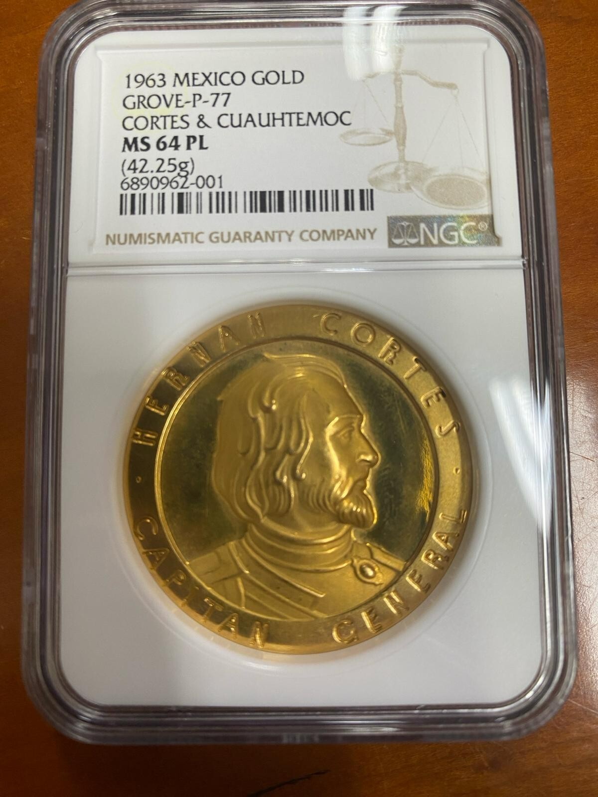 1963 Mexiko Gold Medaillion Cortes Cuauhtemoc Grove-P-77 NGC MS64 PL