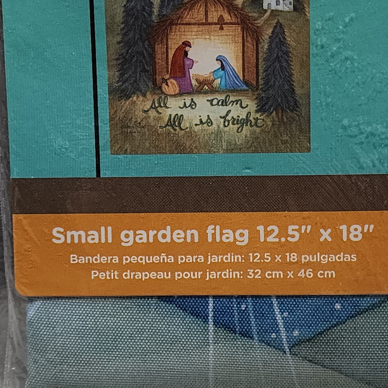 Rain Or Shine "All Is Calm, All Is Bright" Christmas Garden Flag 12.5"x18" NIP