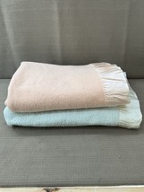 2 Baby Wool Blanket Lot Pink & Blue W Satin Trim Vintage Mid Century North Star