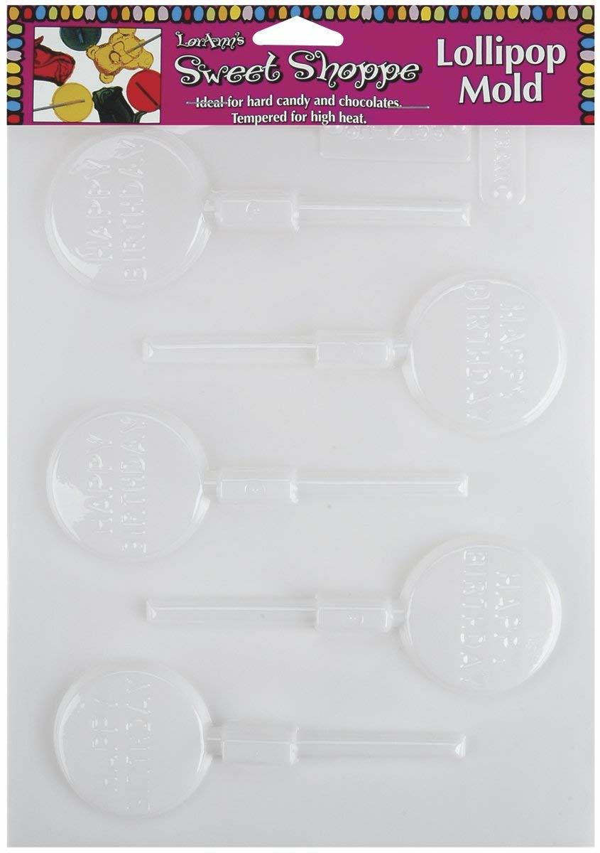Lorann Oils Sweet Shoppe Candy Molds-Happy Birthday Lollipop 5 Cavity |