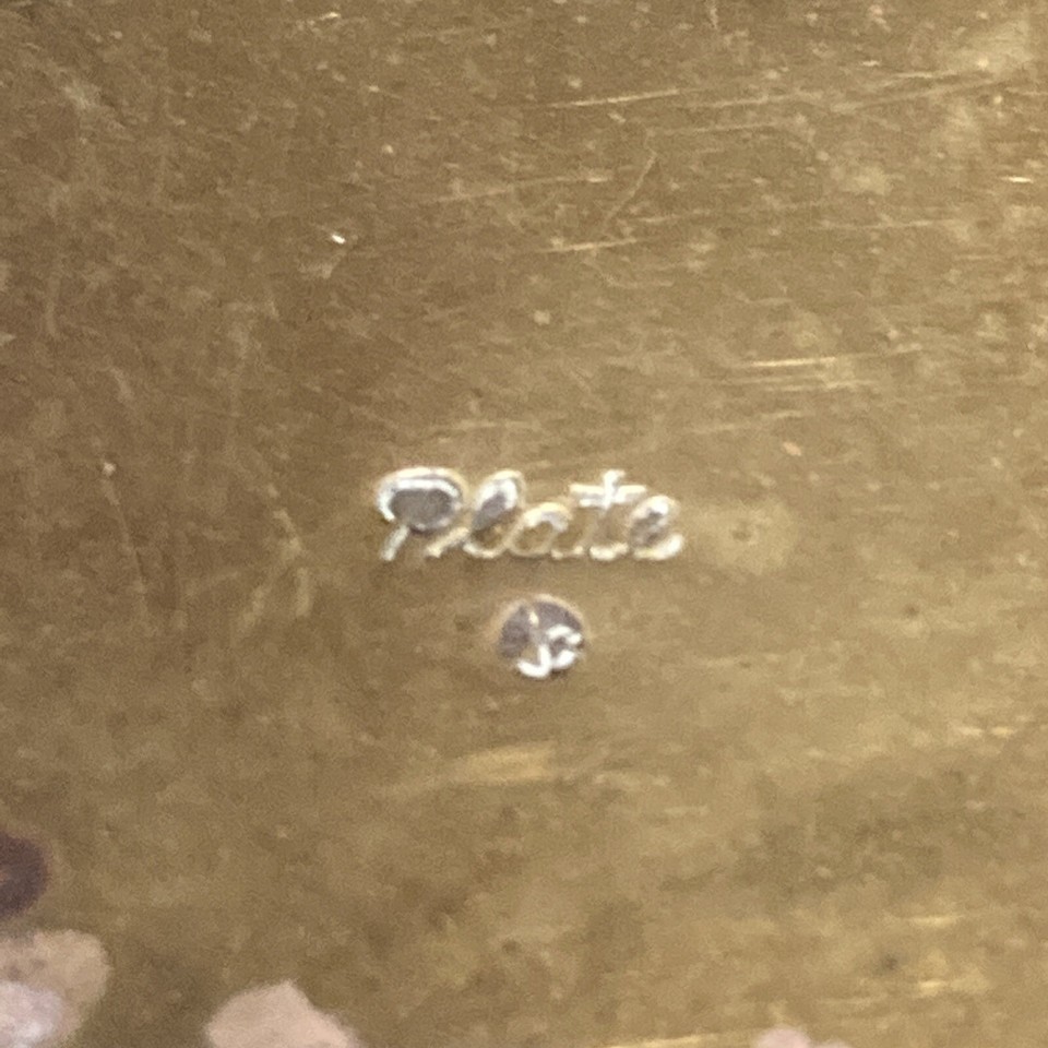 Fascinating piece of vintage Japanese 950 Silver fused with a brass underside. Many Japanese artisans were fond of fusing different metals together and we presume the brass is much heavier than the soft 950 silver and provided better balance as well as contrast in colors. When you knock on the underside, it sounds hollow so we don?t think there?s any additional weight inside. No way to find out other than to break it apart and that seems extreme. Candlestick can still be used and has much life left in it. We are pretty positive it?s Japanese in origin as it was found with other Japanese silver items. Intrigued us because it?s marked ?Silver 950? and ?Plate? at bottom along with a hallmark that may be from the silversmith or retail company perhaps for export to the west.