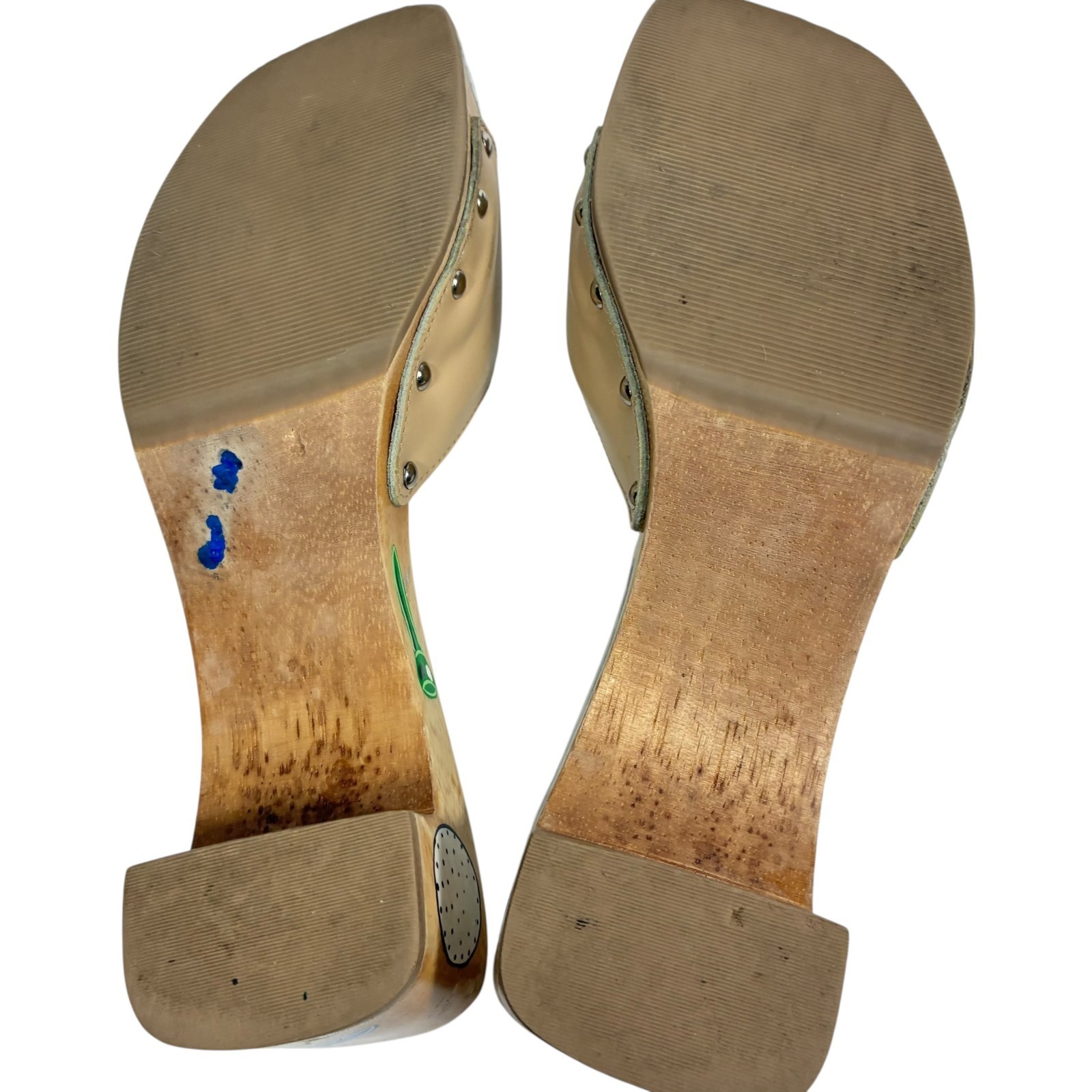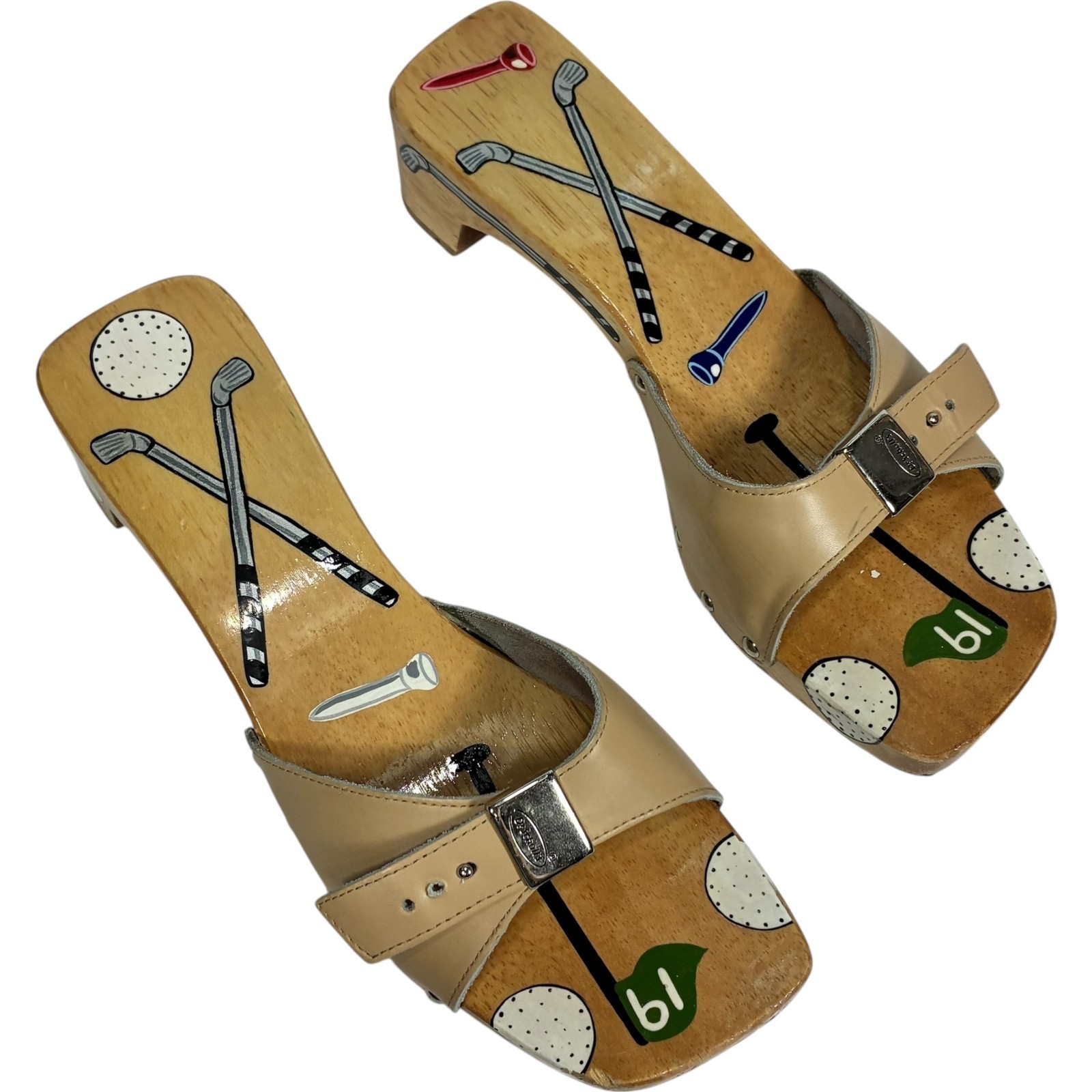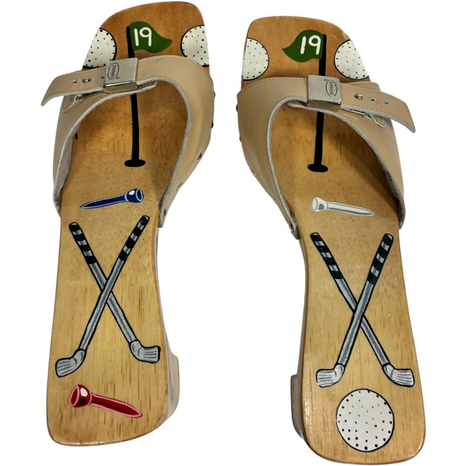 Dr. Scholls 19th hole Golf Theme Wooden Sandals Tan Leather 482DS11 womens 10M