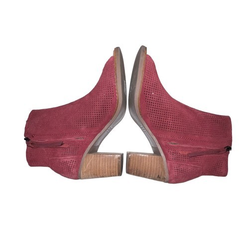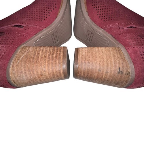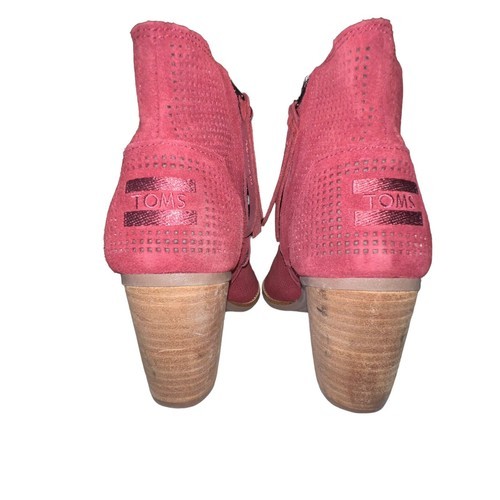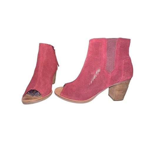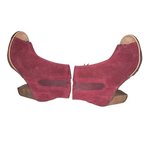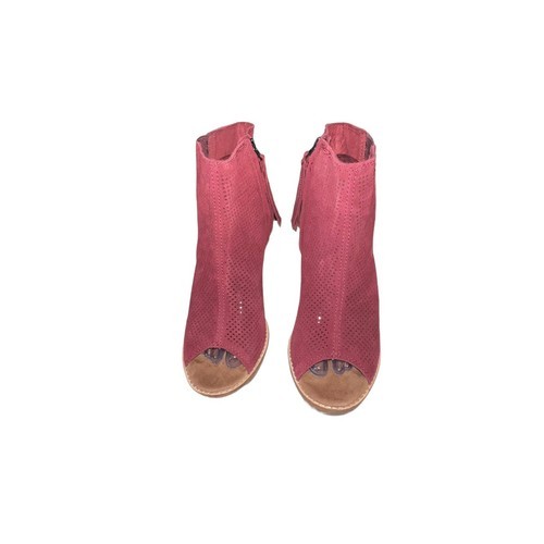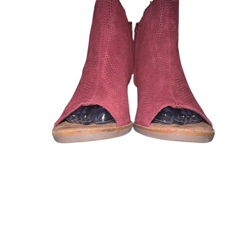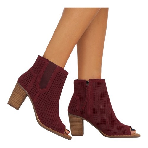 TOMS Majorca Peep Toe Booties Womens Size 8 Burgundy (Oxblood) Perforated Suede