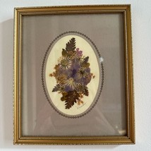 English Country Flowers Pressed Behind Glass in Small Gold Frame Wessex Vintage