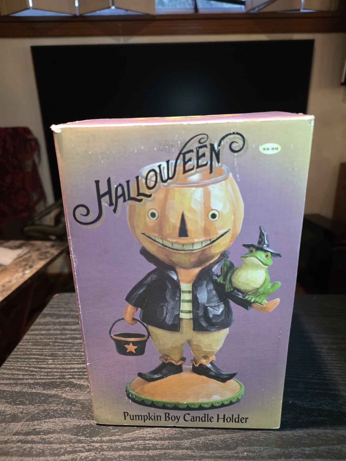 Vintage Pumpkin Boy Candle Holder Tea Light Halloween Jack-O-Lantern Frog Toad