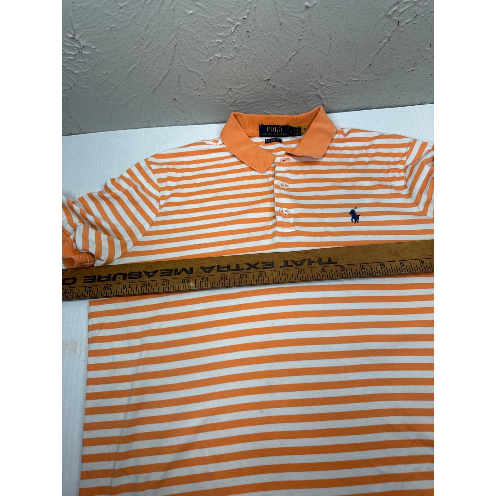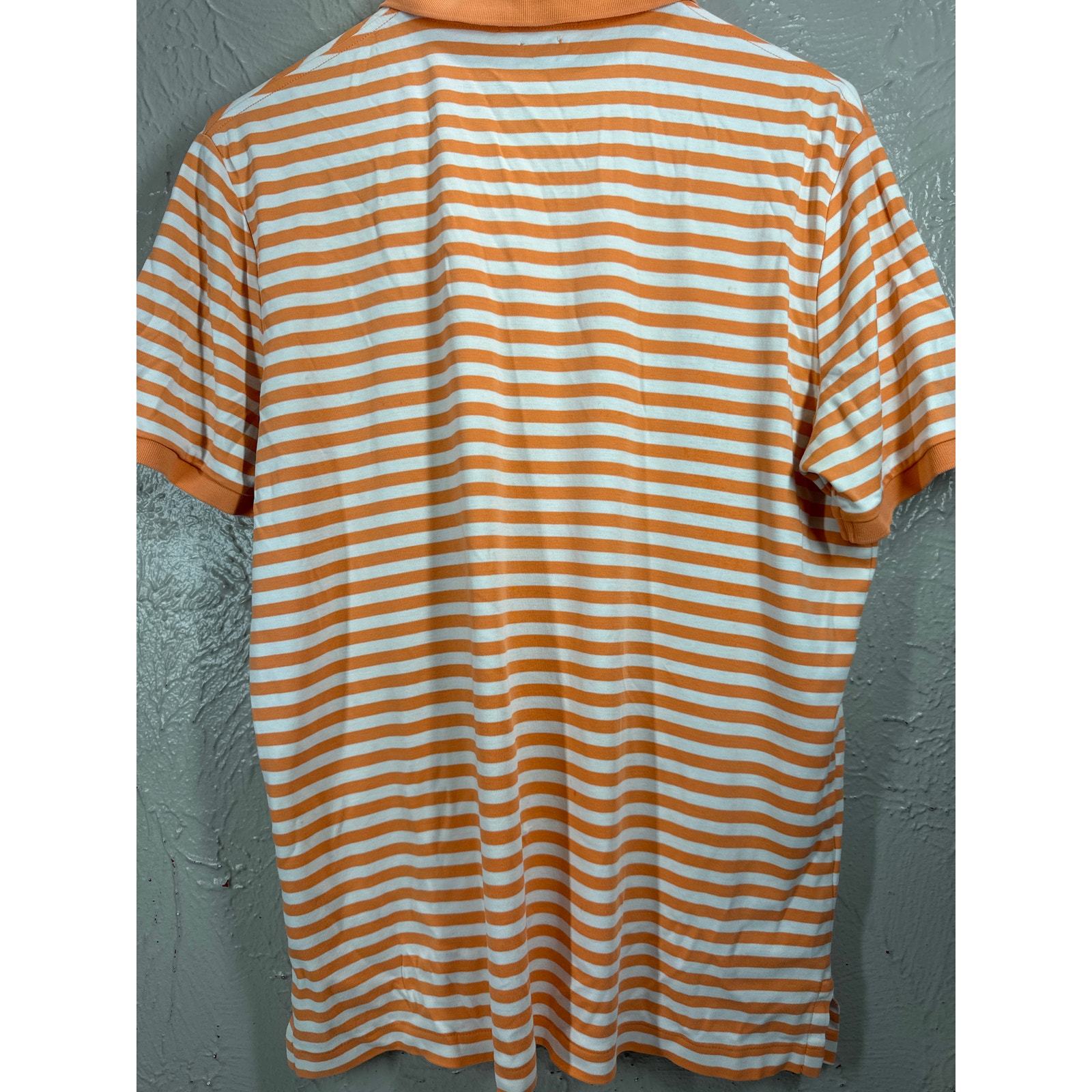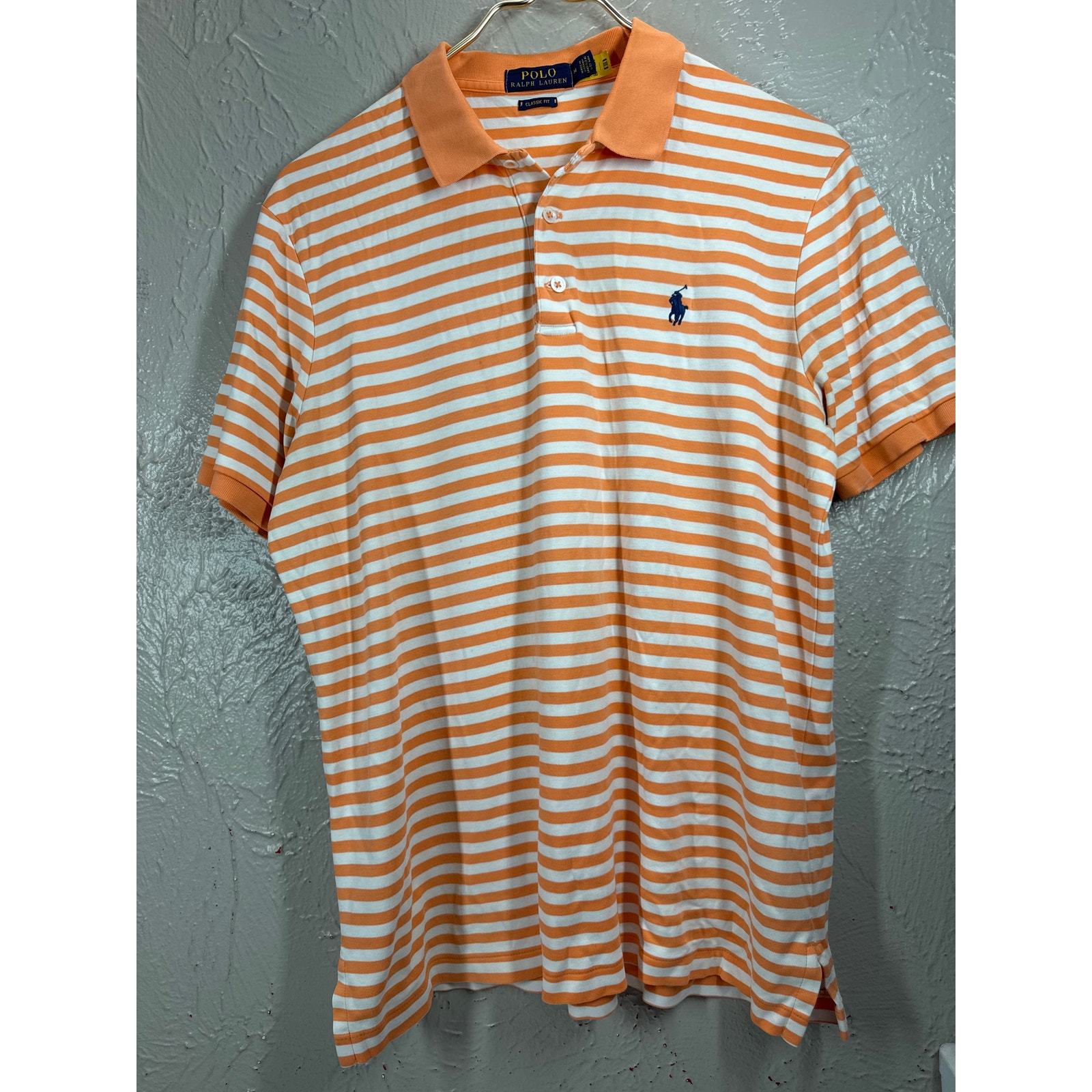 Polo Ralph Lauren Men's Orange White Polo Shirt Classic Fit Striped Size Medium