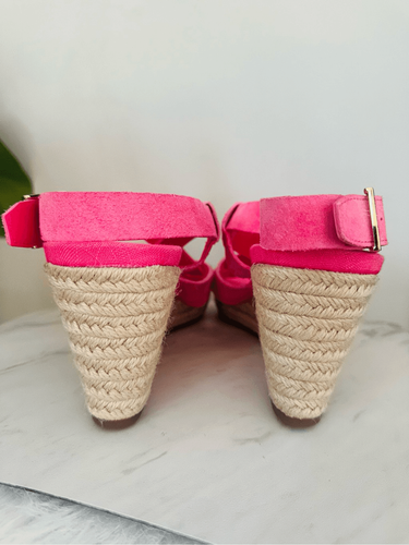 Cole Haan Crystal Wedge Leather Espadrille Strap Sandal, Color: Neon Fuschia/Pink