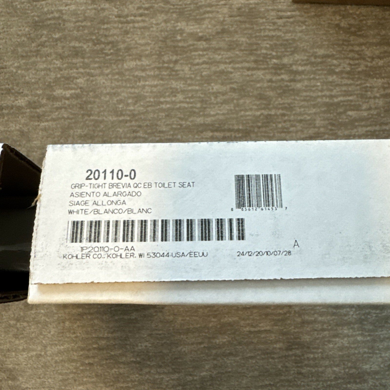 Kohler Toilet Seat K-20110-0 Brevia Elongated Grip-Tight Bumpers