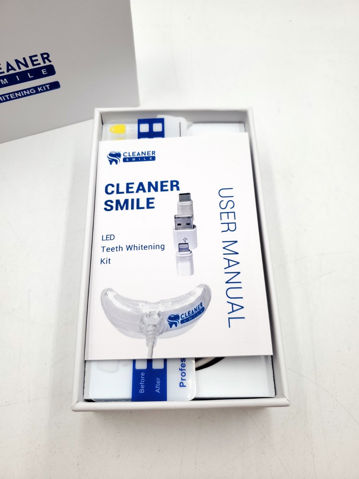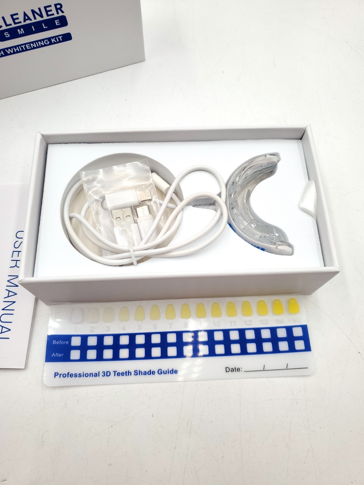 NIB Cleaner Smile LED Teeth Whiteneing Kit 3D White Oral Care. Please review photos for item details. Give me a follow as I list from estate sales for new and vintage items.