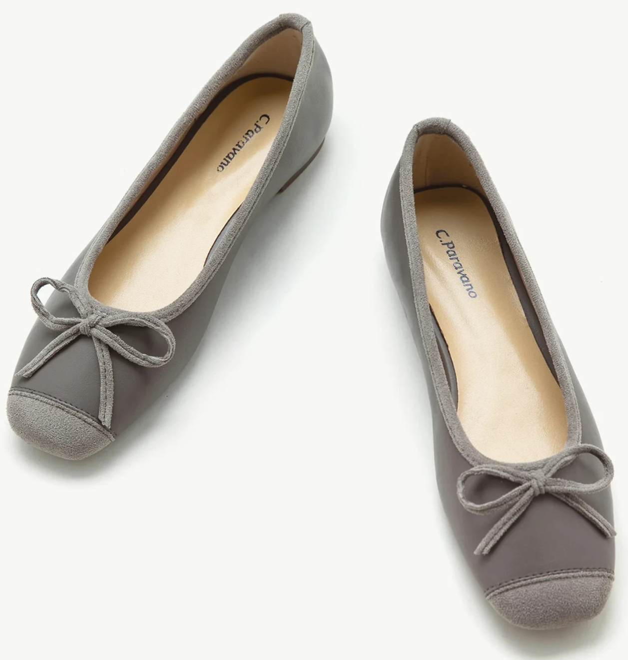 C. Paravano women's Elena Grey Square Cap-Toe Ballet Flats EU42 size US 11.5