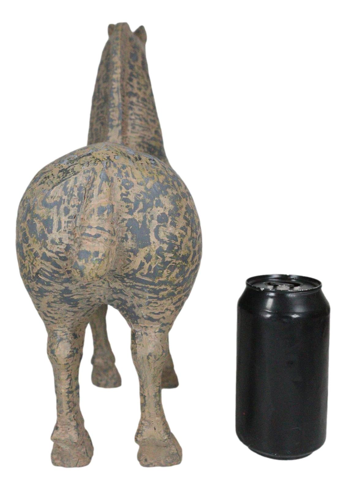 ? This beautiful Han Horse figurine stands at about 13.5" tall, 11" long and 5" deep.
