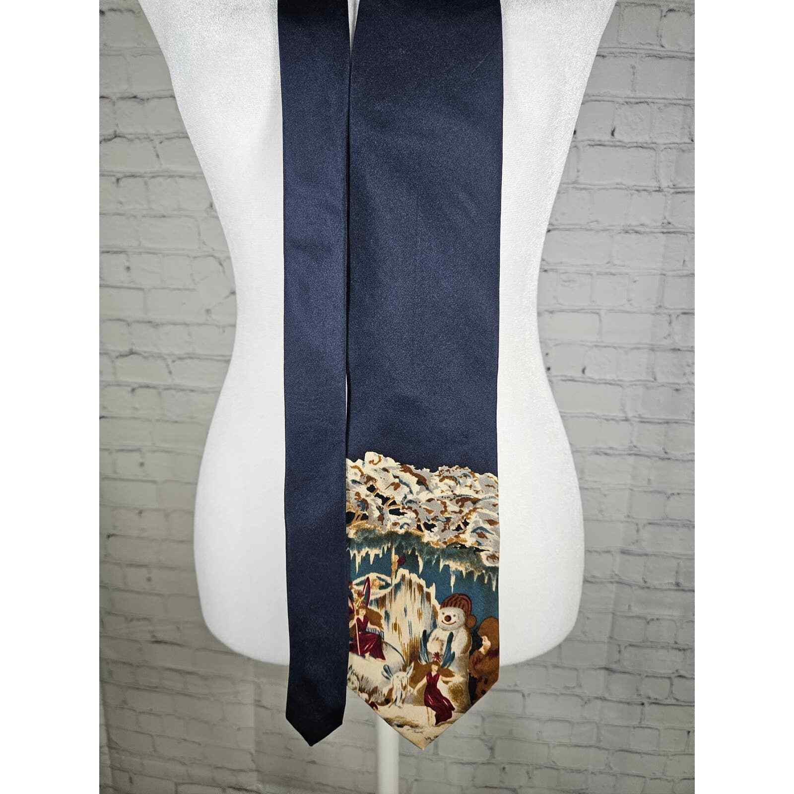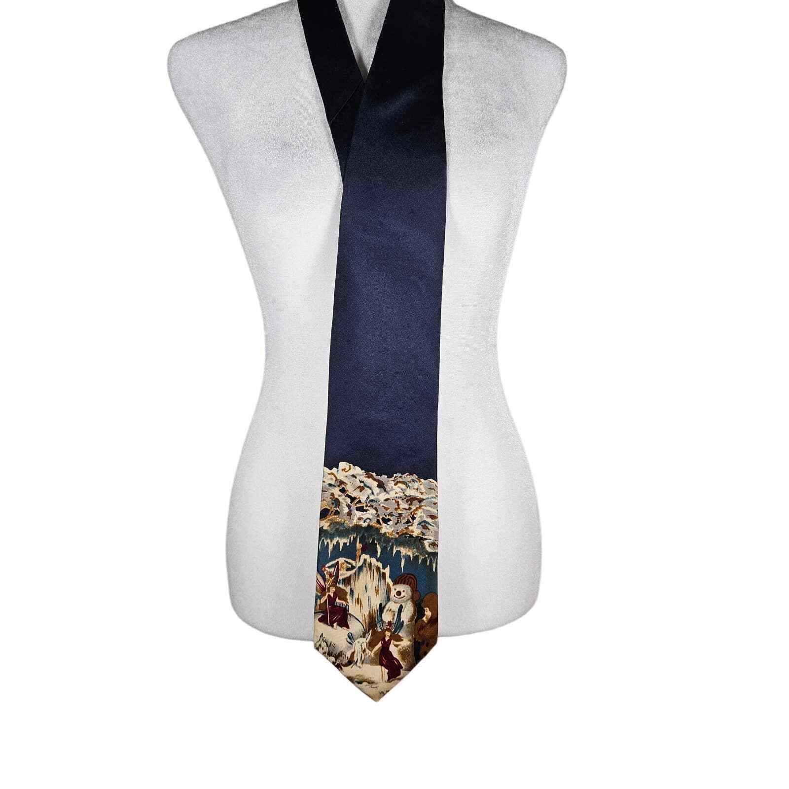 Vintage J.G. Hook Men's 100% Silk Tie Blue Holiday Snowman Christmas