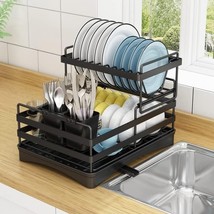 2 Tier Kitchen Counter Dish Drainer Dish Drying Rack, Black