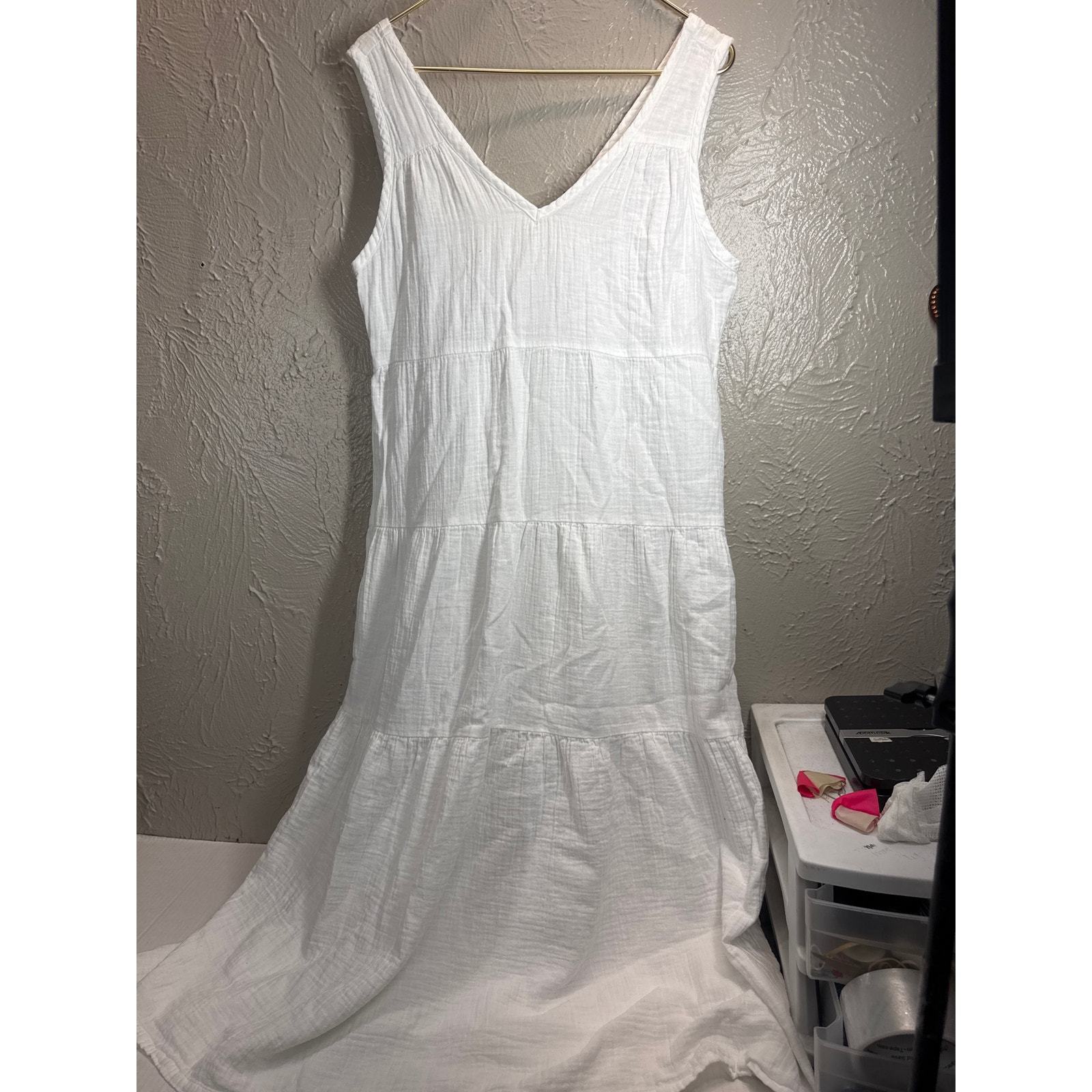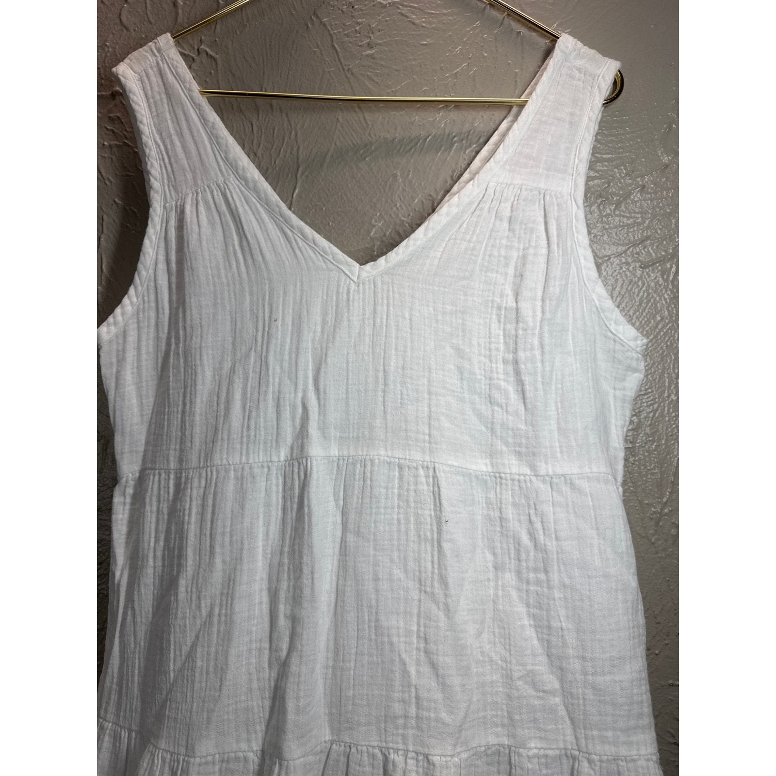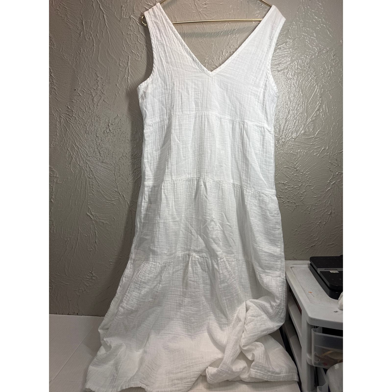 Quince Women?s Organic Cotton V-Neck Maxi Dress Gauzy Tiered Cottagecore Size M