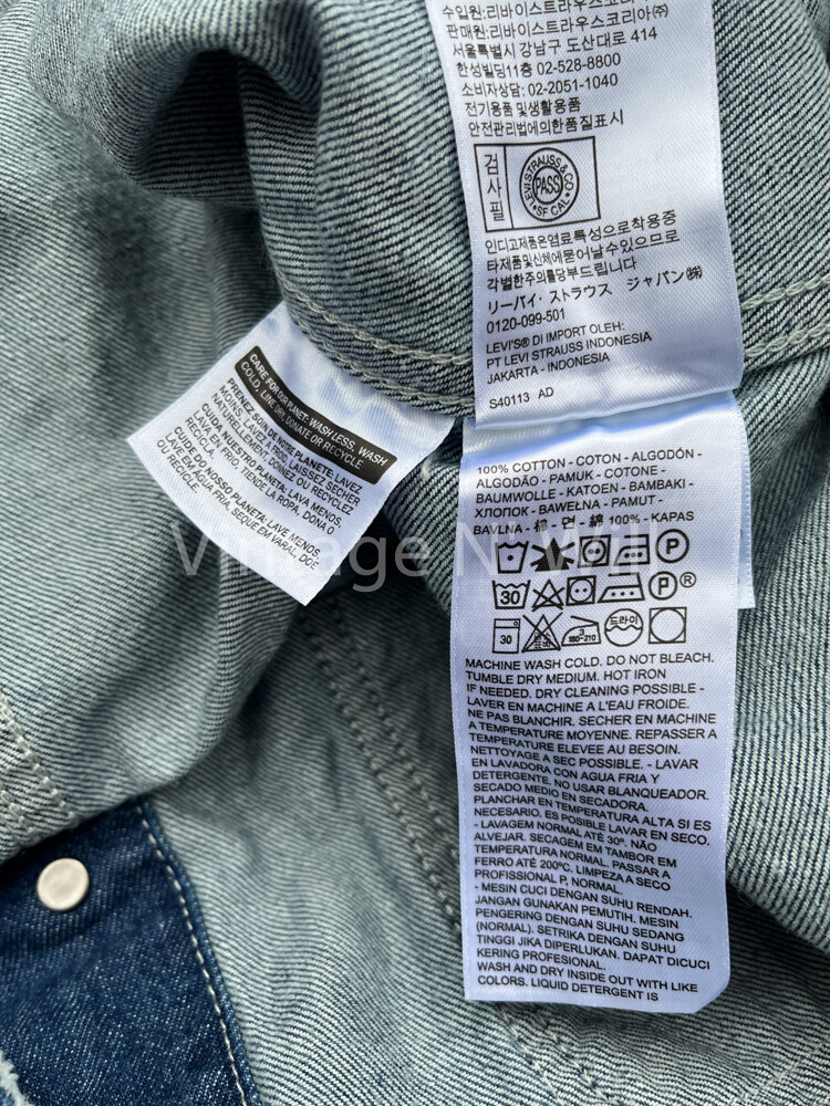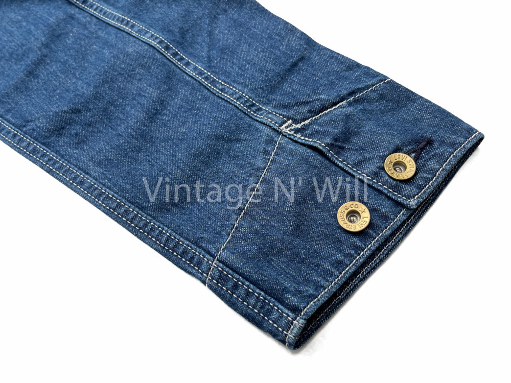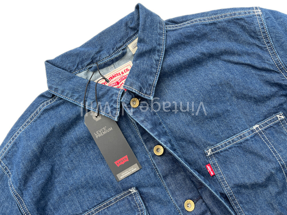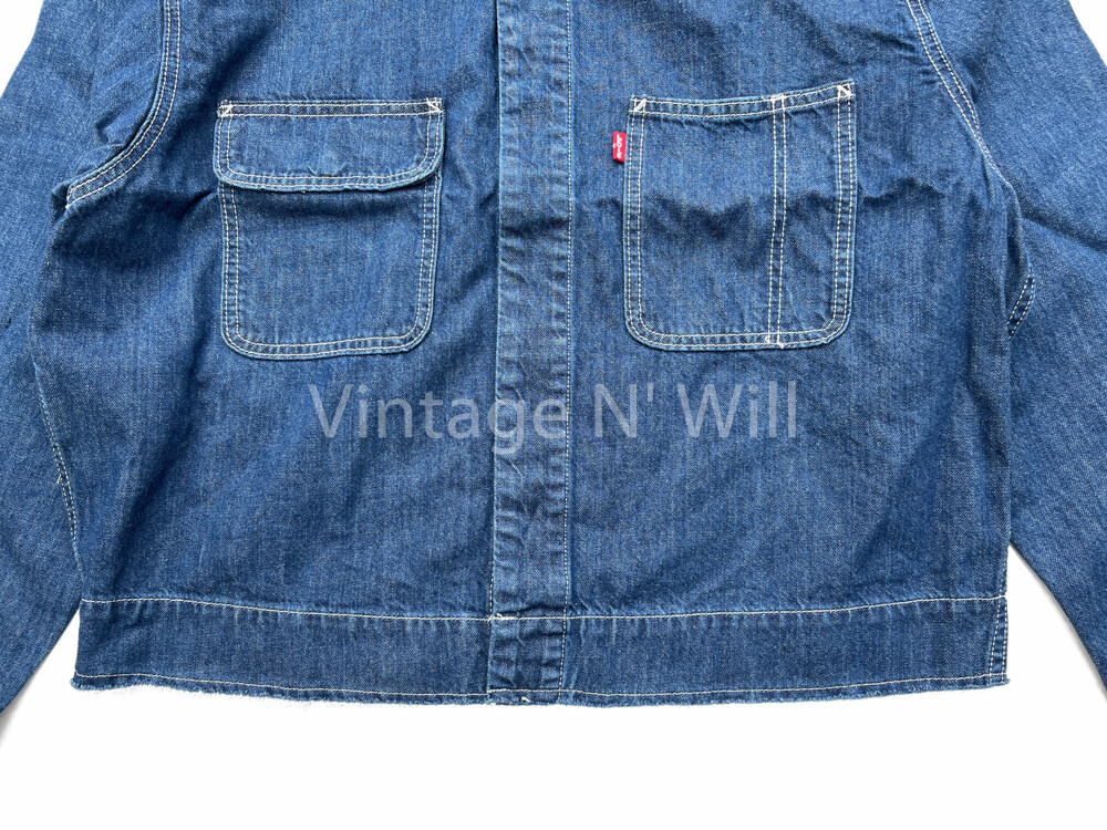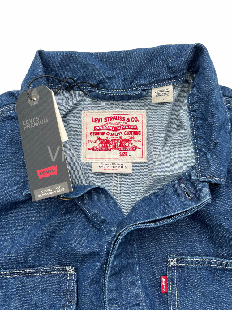 Levis Premium Mens L Blue Half-All Relaxed Fit Cropped Denim Jean Trucker Jacket