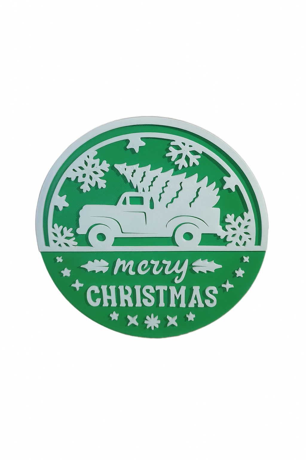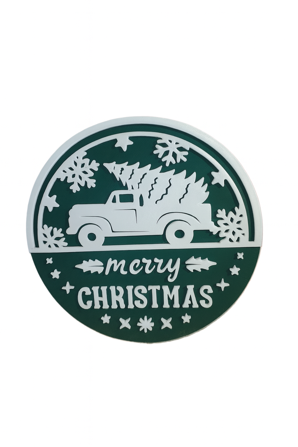 Add a festive touch to your vehicle this holiday season with this durable Christmas-themed automotive accessory. Measuring 3 inches in diameter, it?s made from high-quality, rust-resistant plastic designed to withstand outdoor elements. The classic truck and Christmas tree design captures the joyful spirit of the holidays while giving your truck or SUV a unique seasonal flair. Perfect for spreading holiday cheer on the road, this weatherproof decoration is built to last all season long.