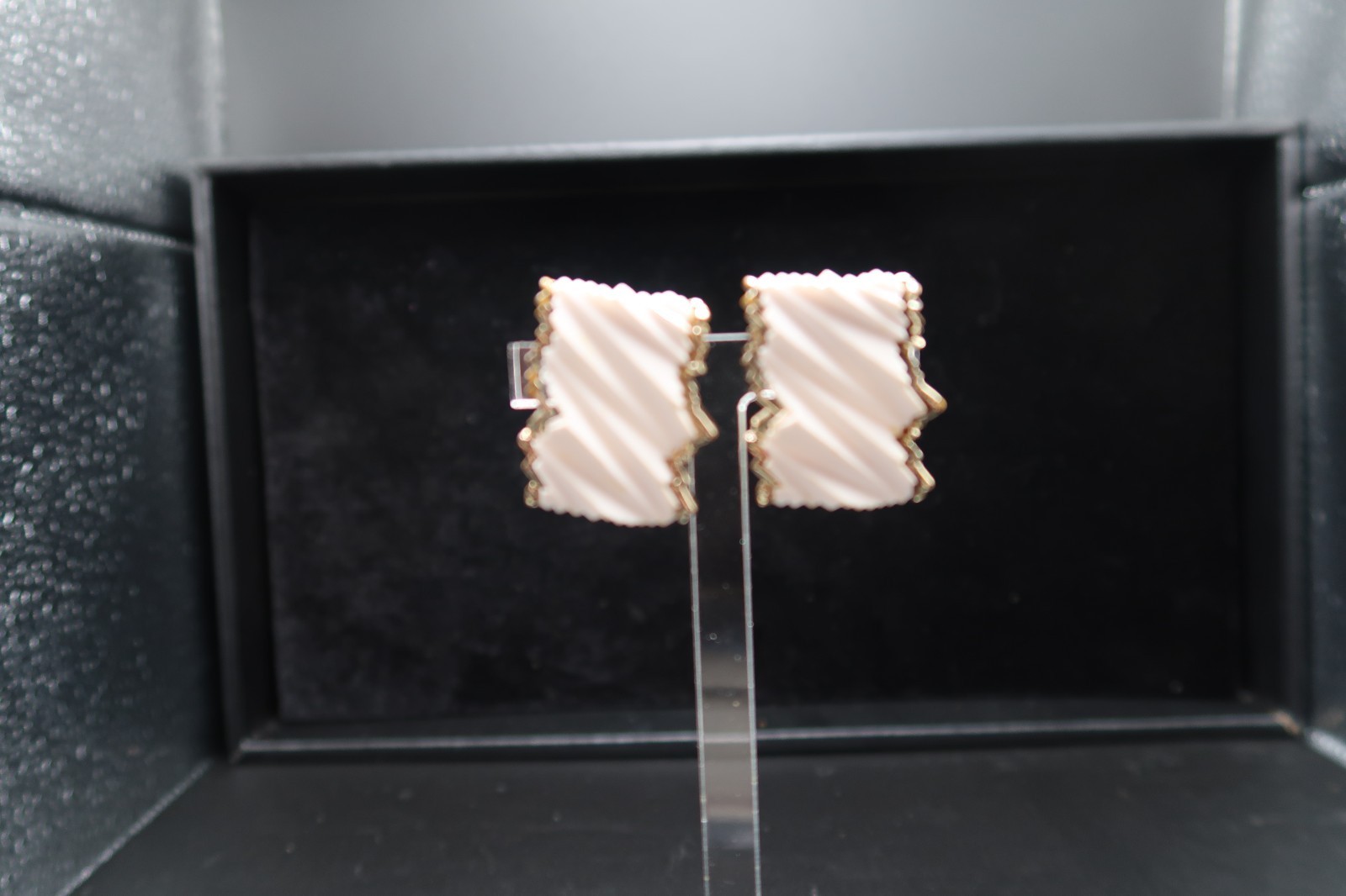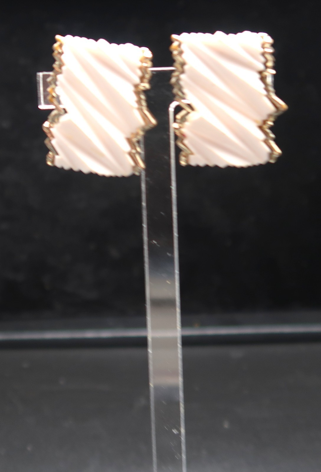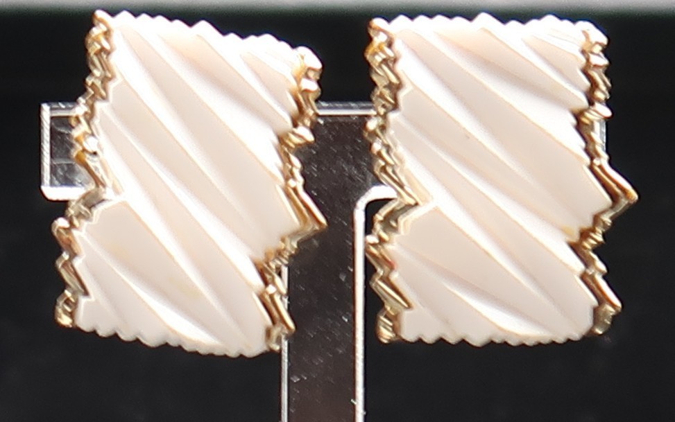 Vtg BSK White Resin Abstract Design w/ Gold Tone Trim Clip-On Earrings Signed