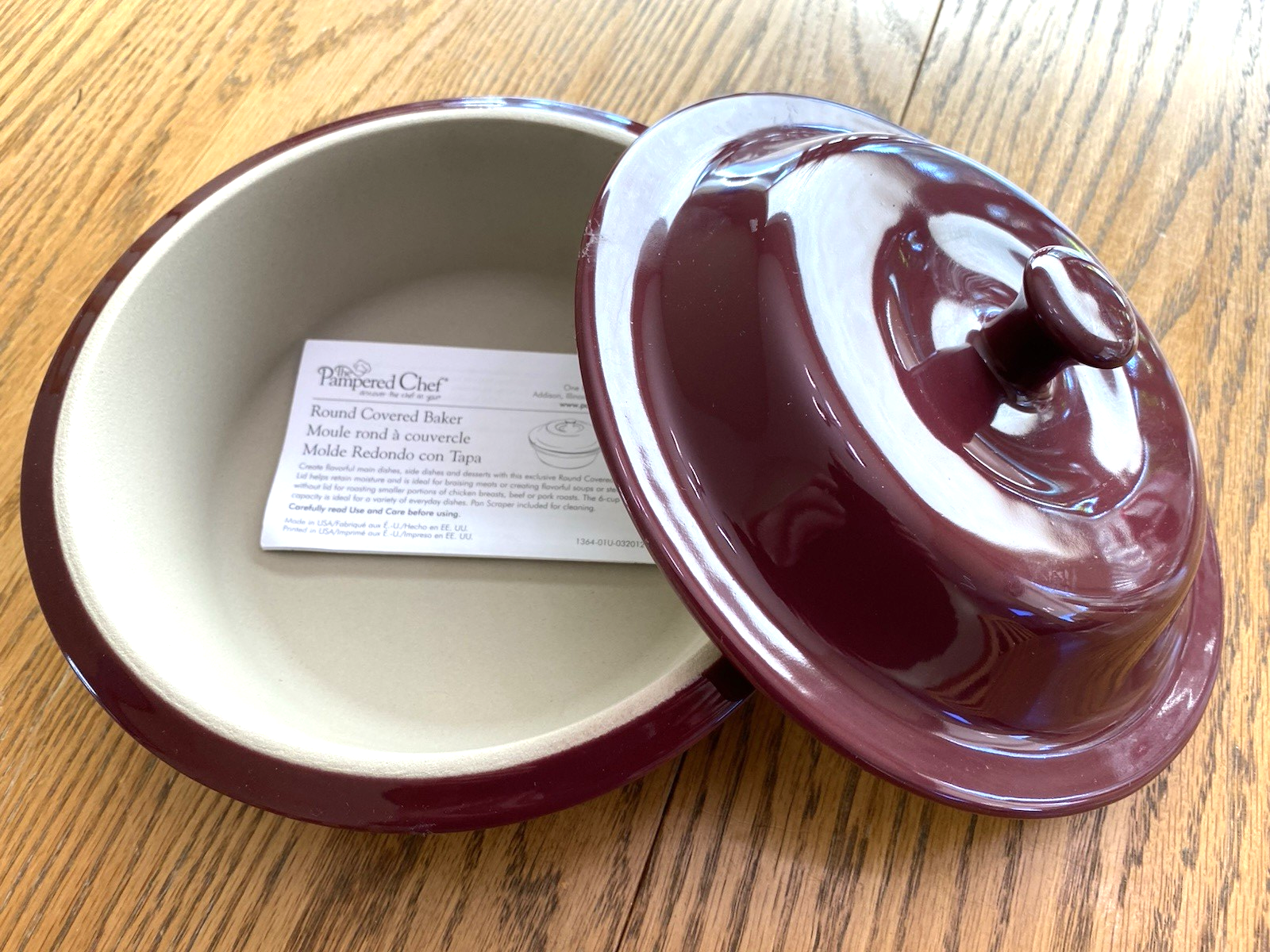 NEW Pampered Chef Cranberry 6 Cup 1.5L Round BAKER Casserole Dish w/Lid 1364