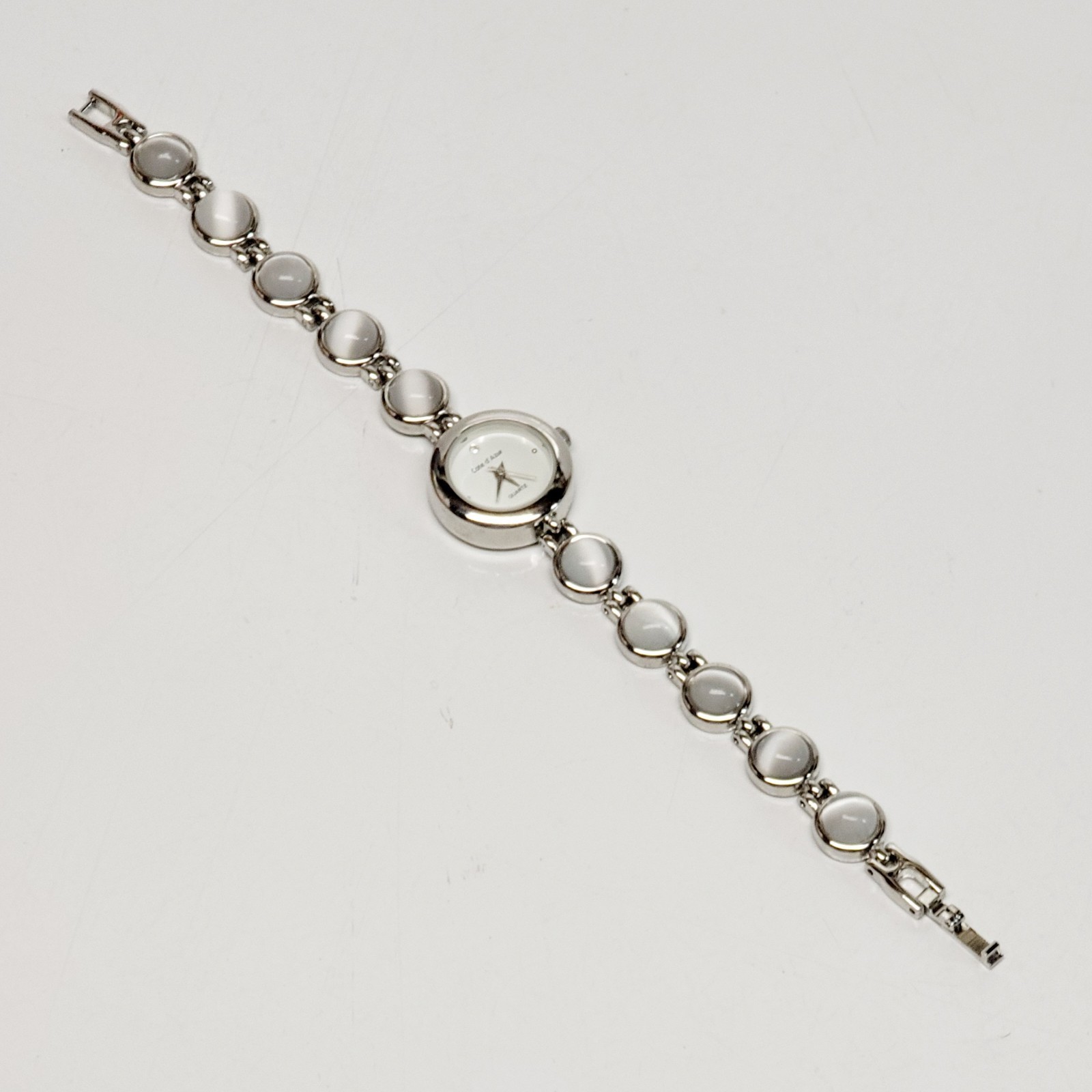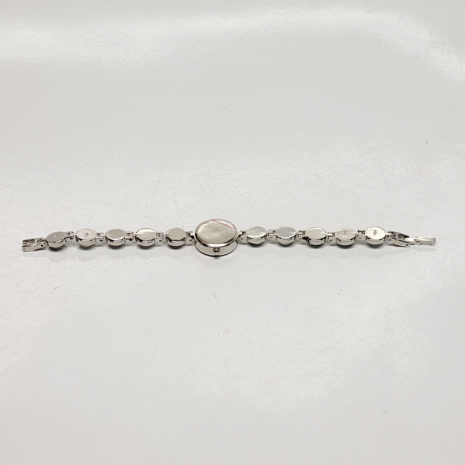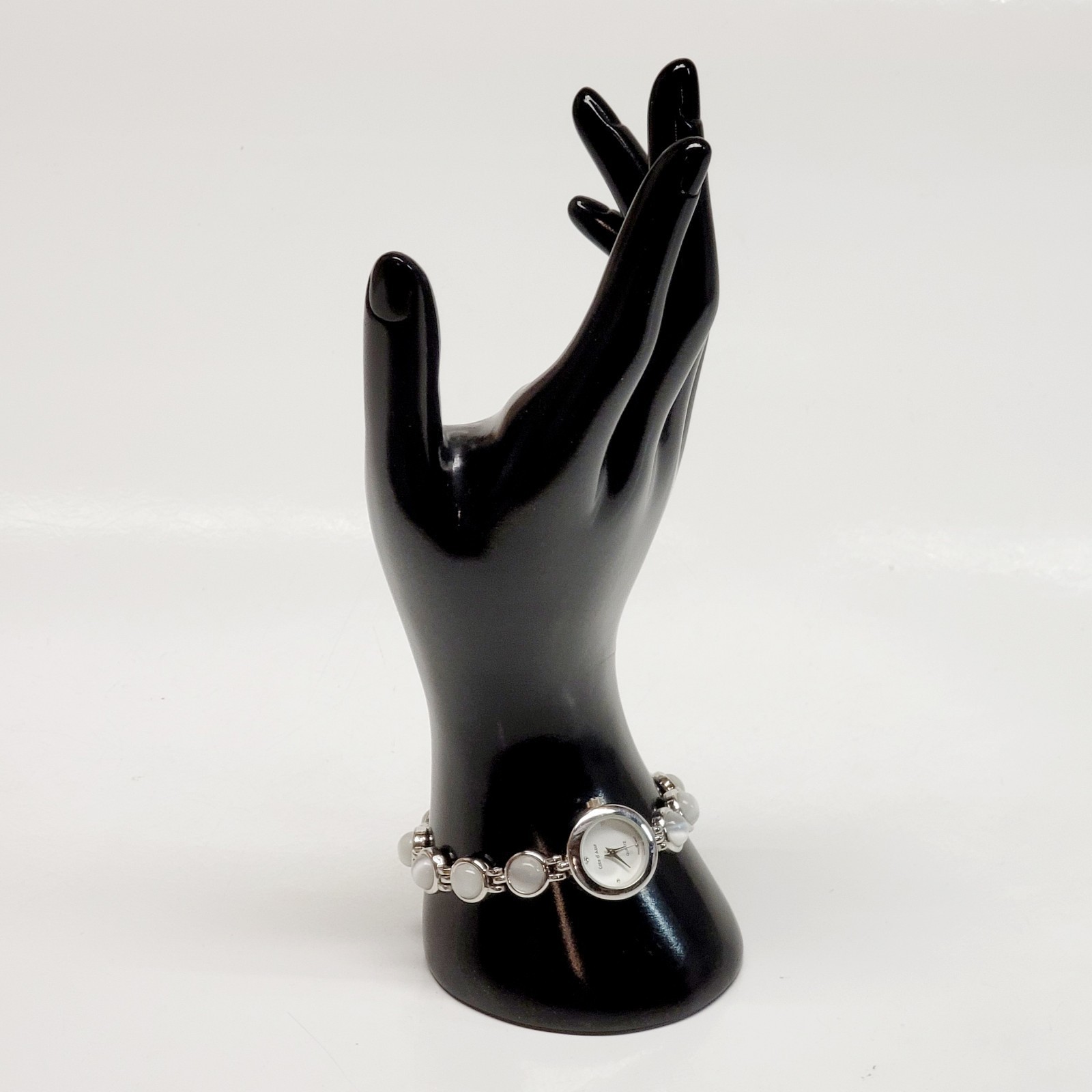 The Cote d'Azur Pearlescent Accents Quartz Analog Women's Wrist Watch is a stylish and elegant timepiece designed for formal occasions. This wristwatch features a quartz movement for accurate timekeeping and an analog display for easy reading. With a new battery installed, this watch ensures reliable performance. The design includes pearls accents and a dressy style, making it a perfect accessory for women who appreciate sophisticated timepieces. Perfect for everyday wear or special events, this Cote d'Azur watch is a timeless piece that exudes charm and class.
