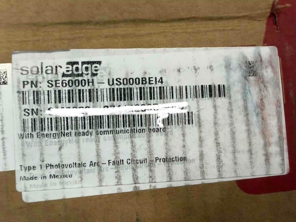 NEW SOLAREDGE SINGLE PHASE INVERTER WITH HD WAVE TECHNOLOGY. WITH ENERGY NET READY COMMUNICATION BOARD. SE6000H-US000BEI4.