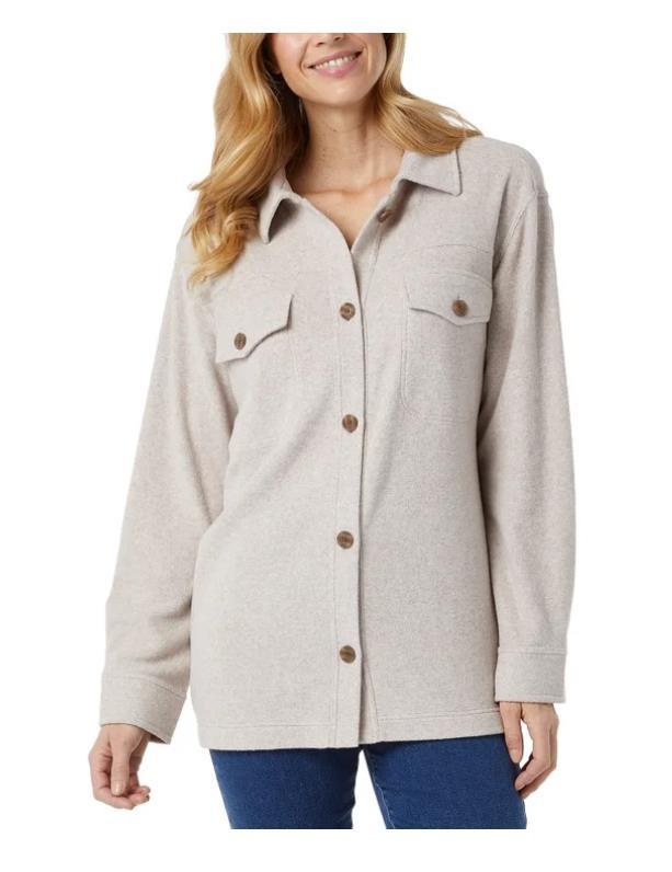32 Degrees Womens Shirt Tan Button-Up Long Sleeves Chest Pockets Soft