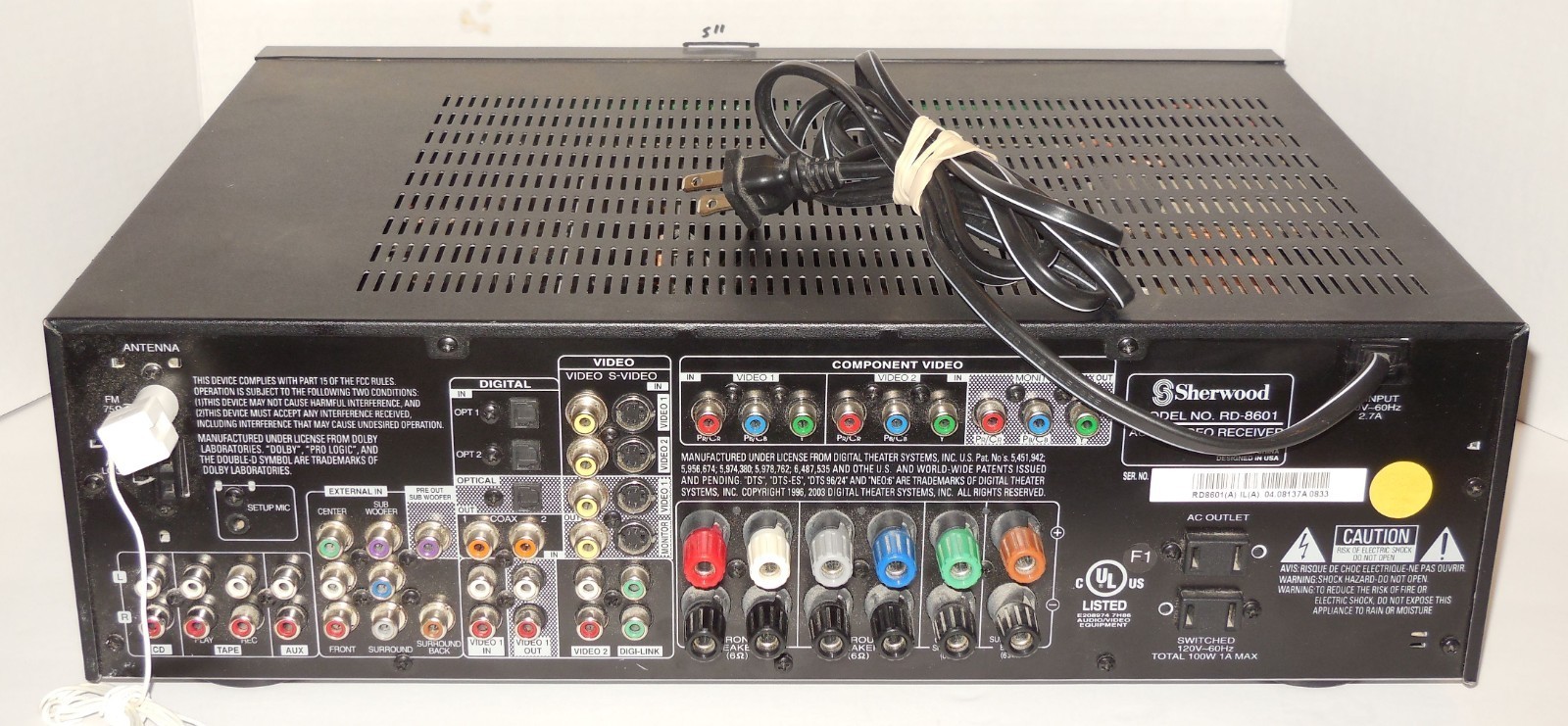 For Sale is a Used but in good Condition sherwood RD-8601 6.1 Channel AV 560W Home Theater Receiver NO REMOTE. Does NOT include a Remote But will include an HDMI or RCA Red Yellow White Audio Video Cables. This item will be double boxed for Added protection in transport this is why shipping may seem high especially if you do not live in Florida. Box will be at least 24x24x12 and is at least 25lbs. Please Note this ships via UPS and Must have a Street address if you have a PO Box you must select USPS shipping or the transaction will be canceled. Please see photos for more details. Please ask any and all questions prior to purchasing. Fast same or next day shipping with delivery confirmation within the U.S. NOTE: SORRY BUT DO TO THE WEIGHT OF THE ITEM and SIZE OF THE BOX THIS ITEM ONLY SHIPS TO CUSTOMERS WITHIN THE UNITED STATES