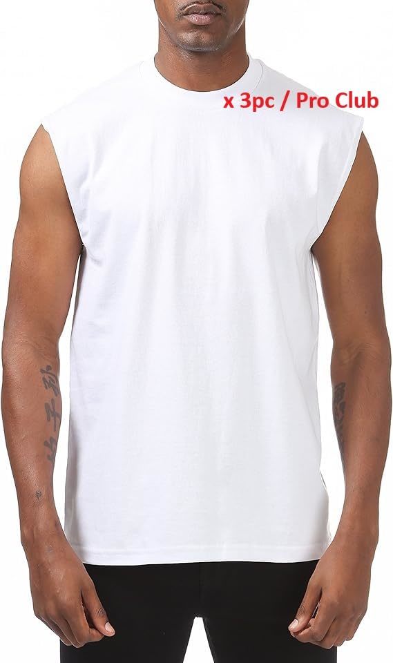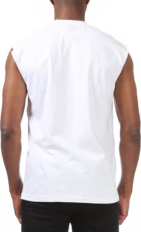 GTE Zone Men's Pro Club Heavyweight Sleeveless Muscle T-Shirt, White, Crew Neck,