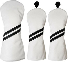 Leather White Black Stripes Golf Headcovers - 3 piece set - NEW
