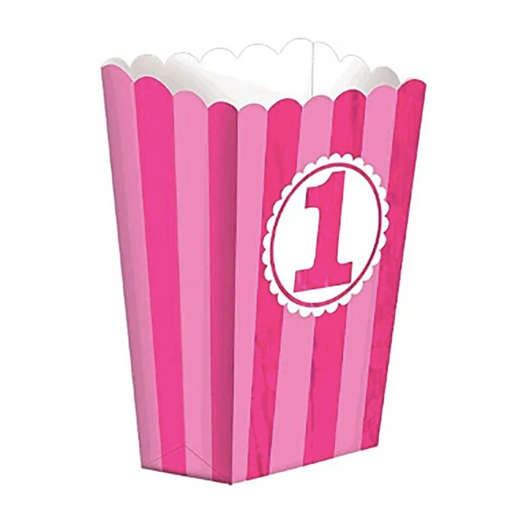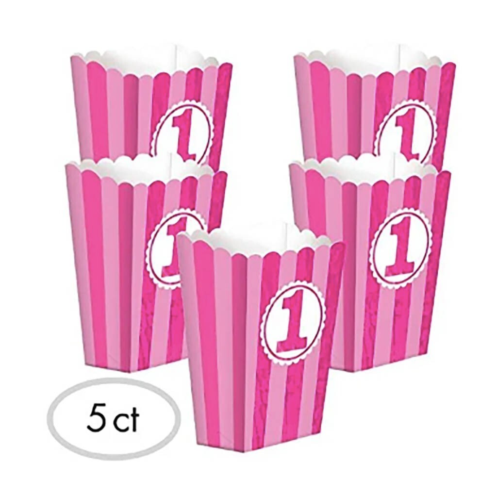 Popcorn Box Holder Bucket Pink Stripes 1st Birthday Party Favor Supplies 5-Count