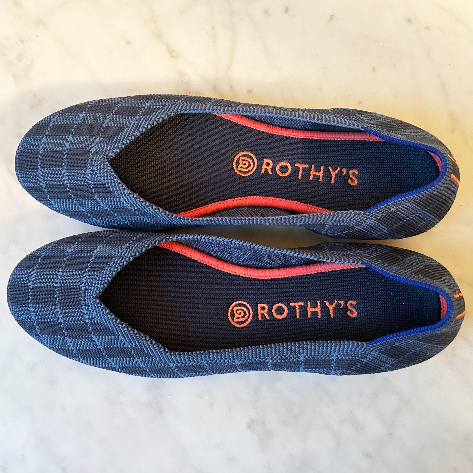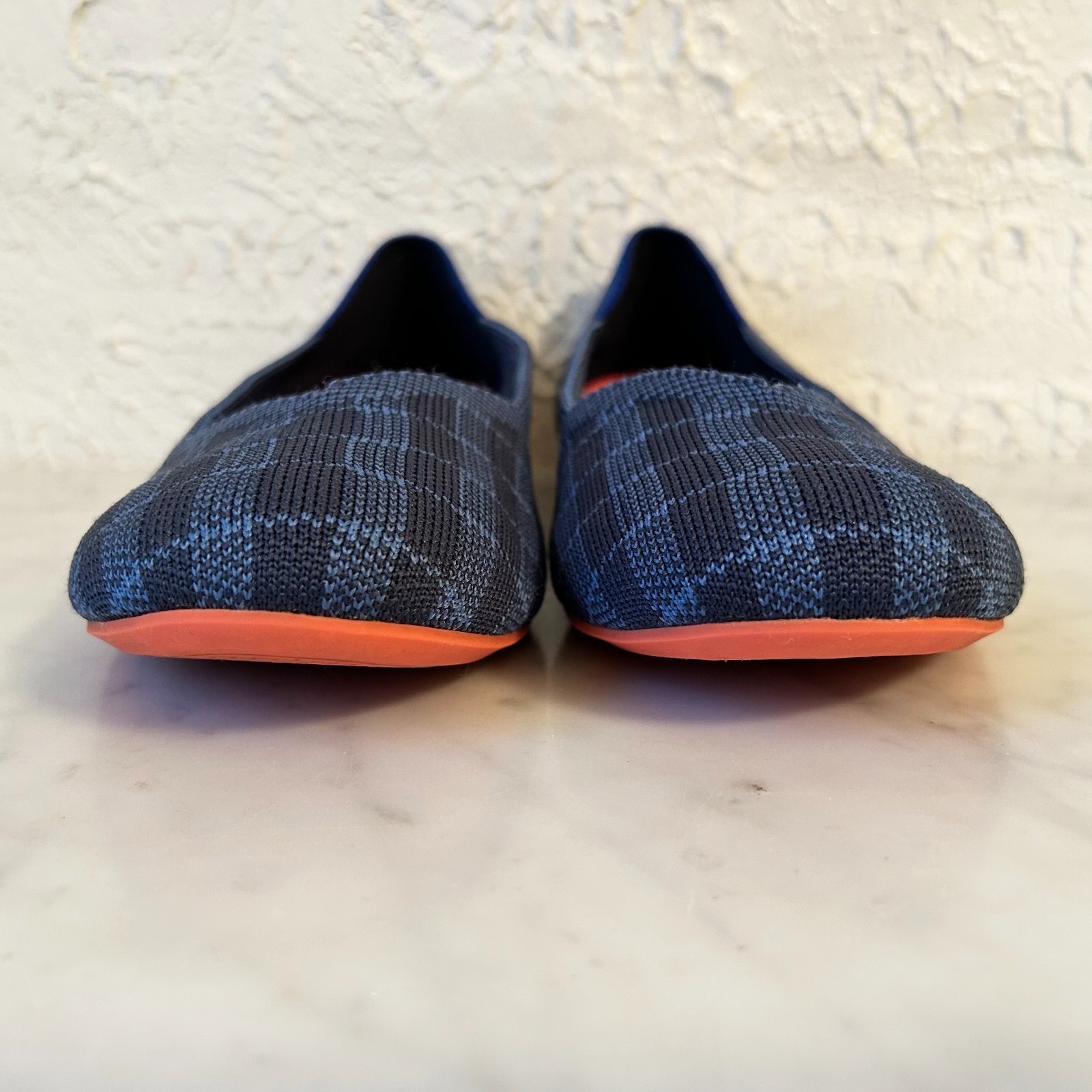 Rothy’s The Flat Indigo Blue Gingham Check Plaid Knit Ballet Flats - Women’s 9.5