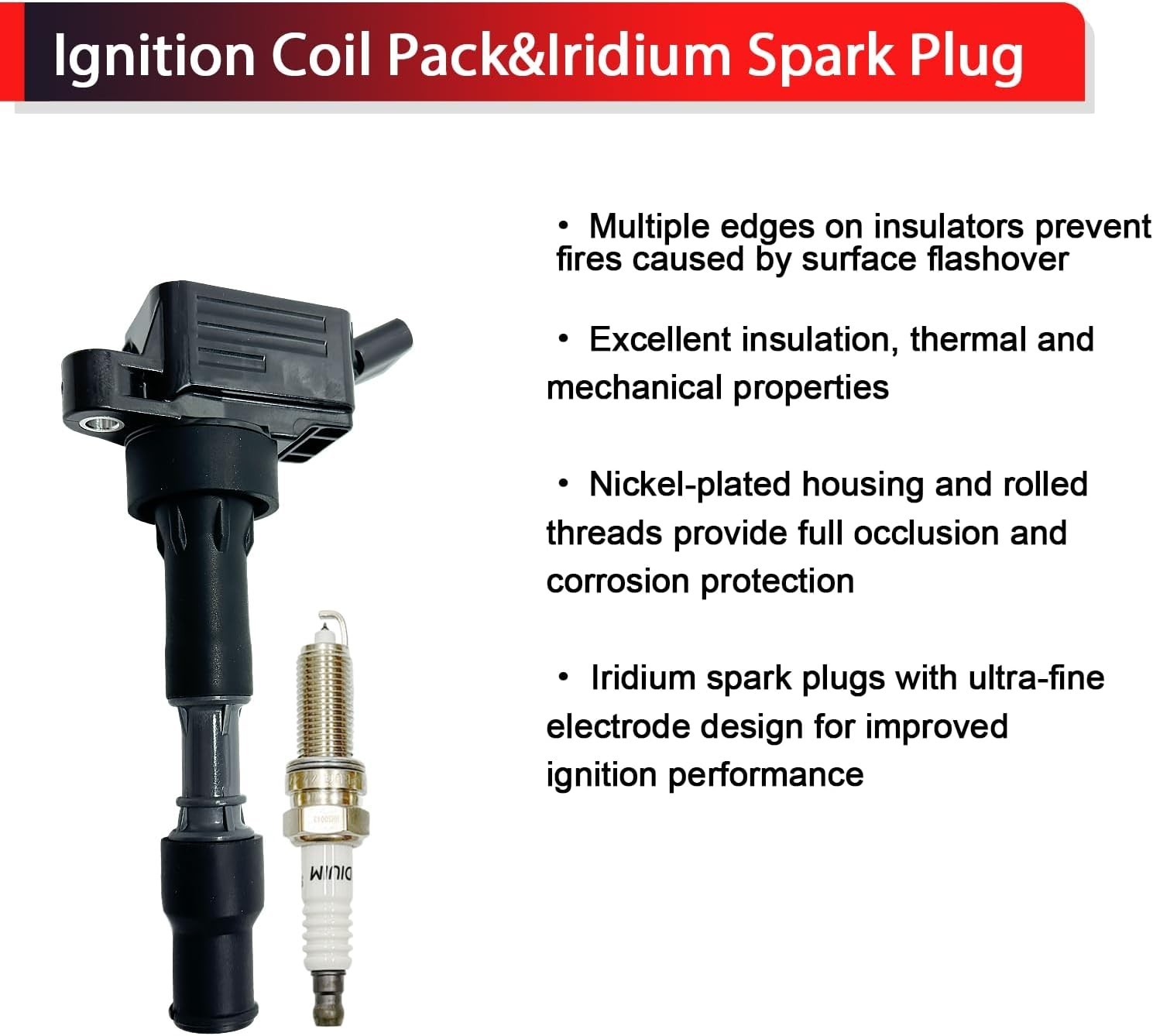 UF816 Ignition Coil Pack and 9723 Iridium Spark Plugs Compatible with 2016-2022