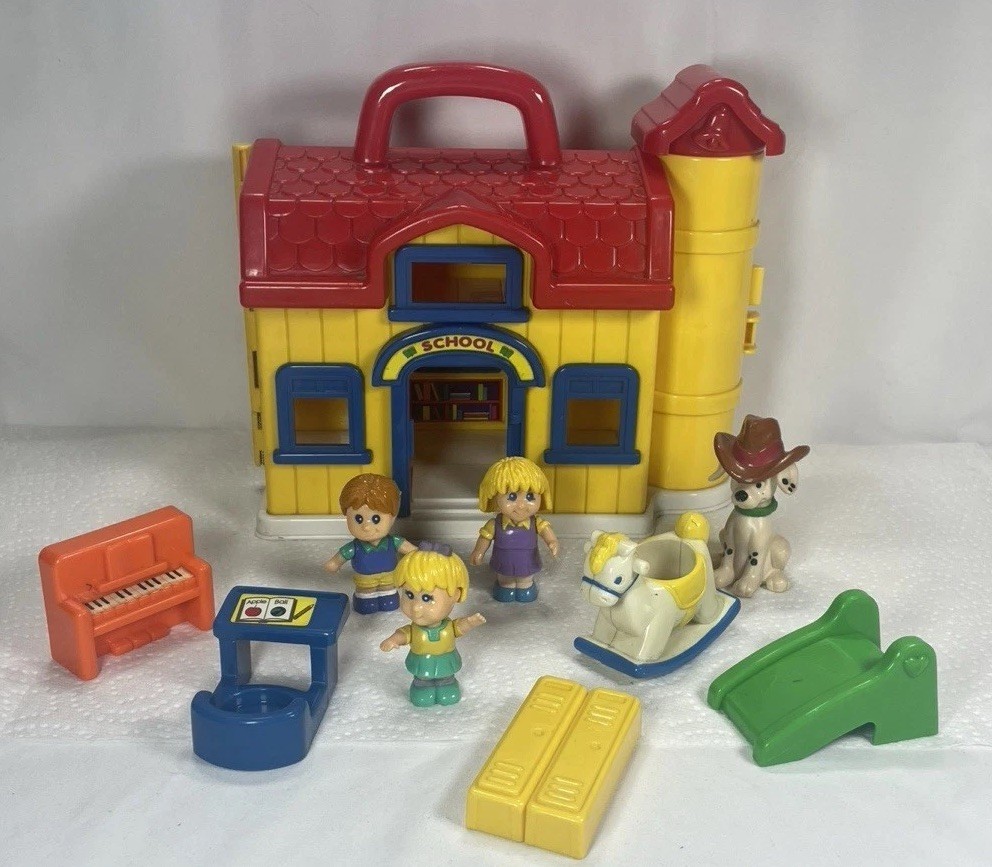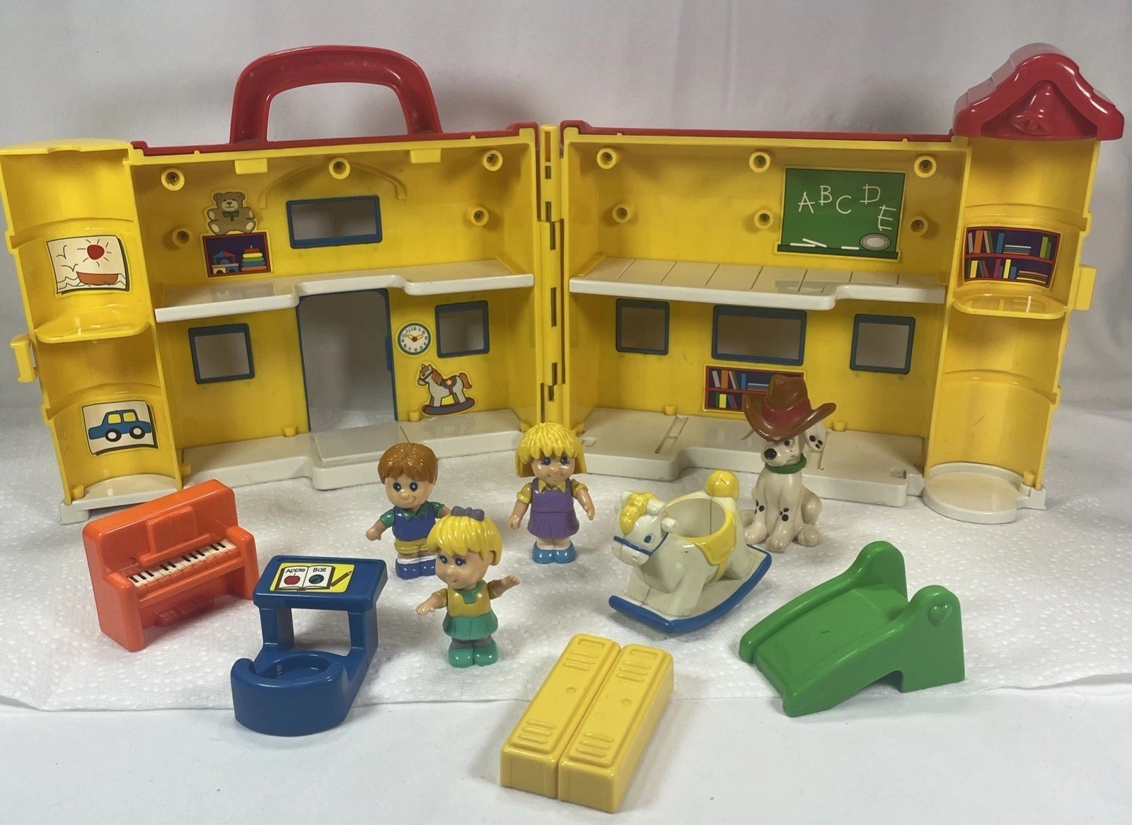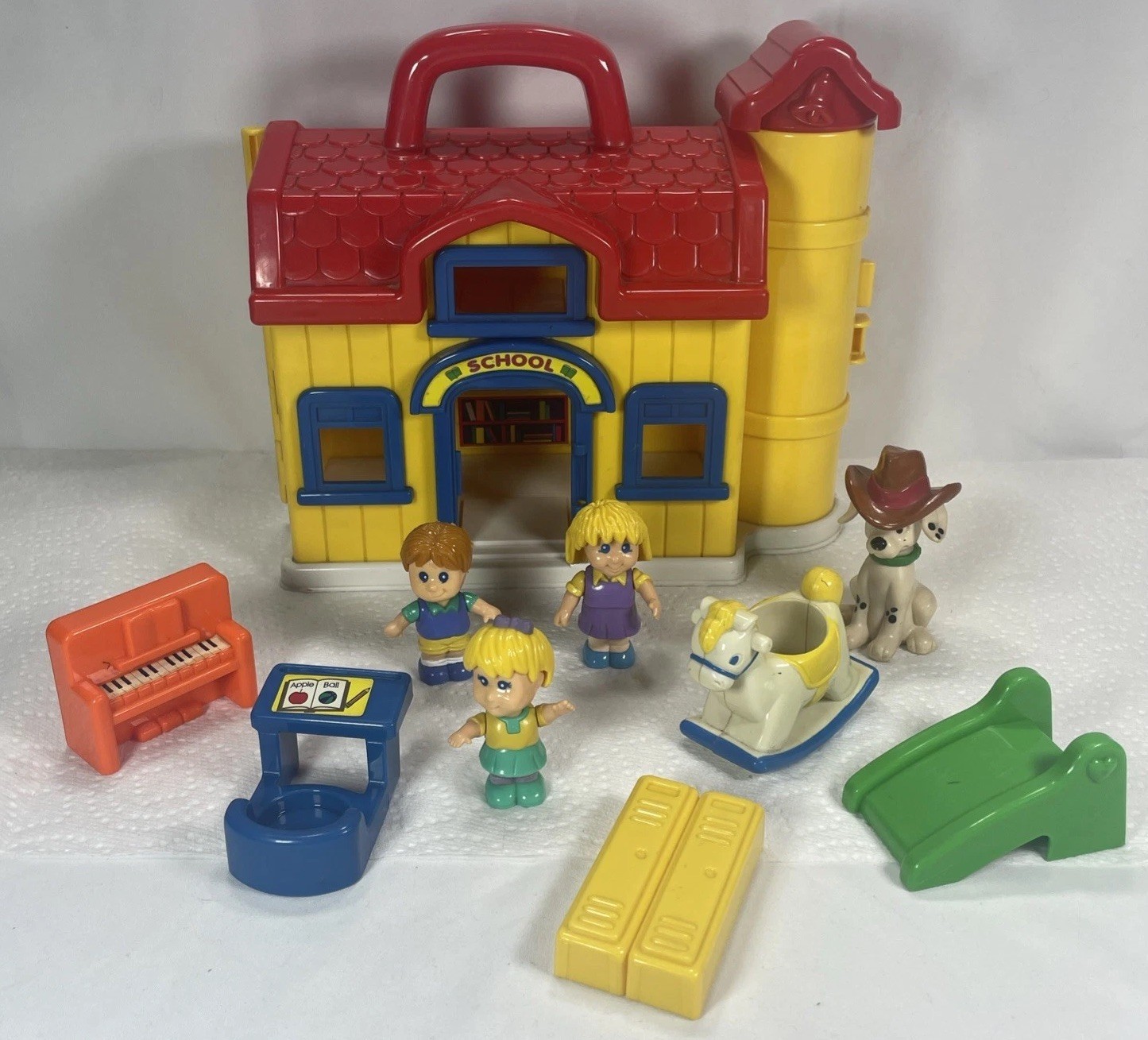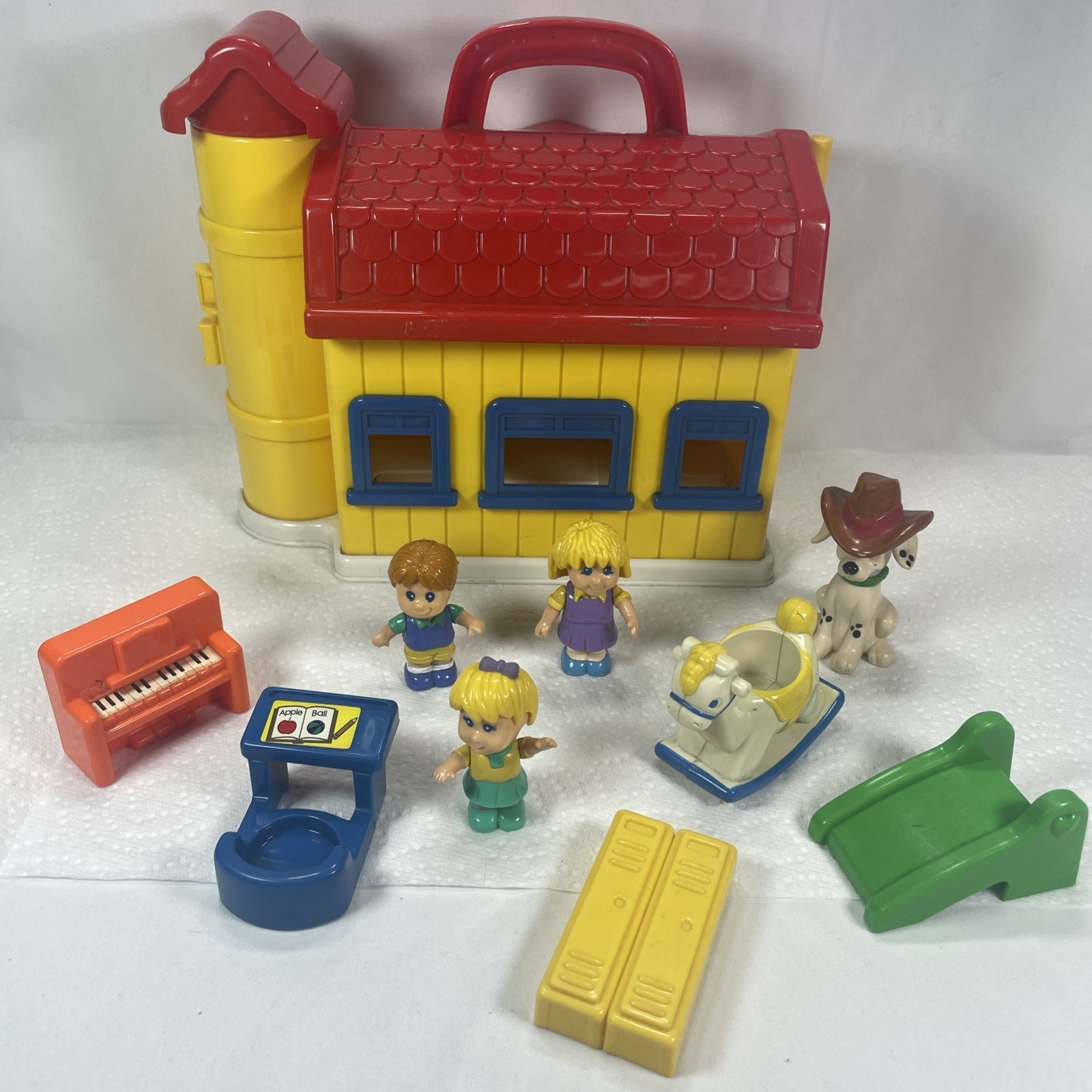 VTG School house With Little People, Dog, Other Things Fisher Price